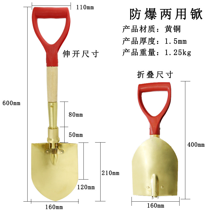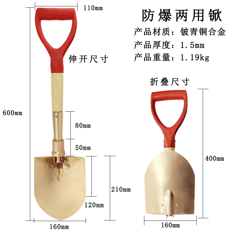 방폭 샤프 삽 구리 합금 샤프 삽 Bohai 브랜드 420*240mm 샤프 삽 소방 삽 퓨어 구리 소방 삽스토어 가기