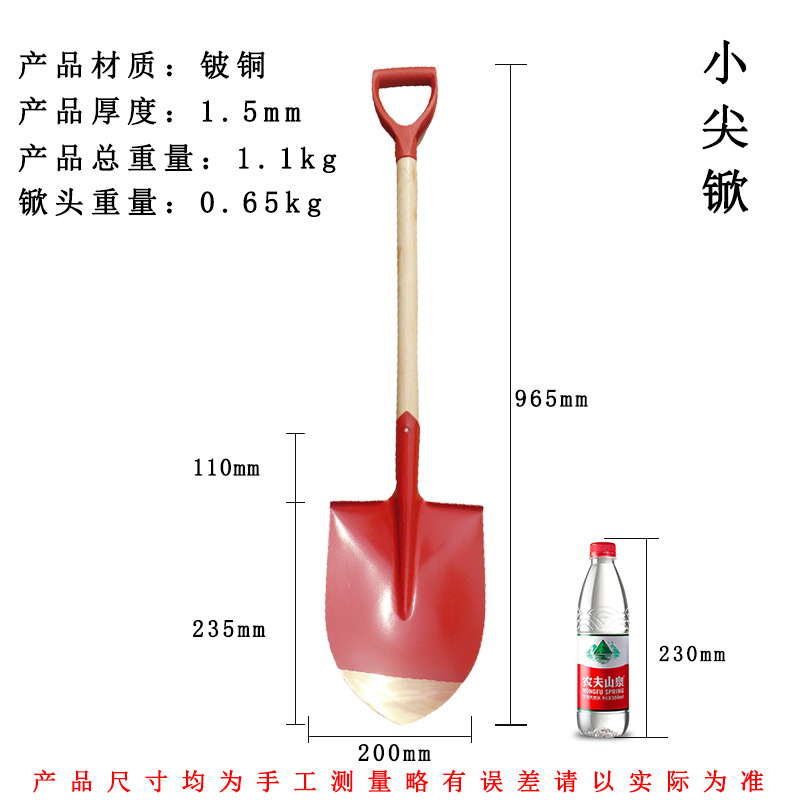 • 340*175mm 높은 경도-손잡이가있는 베릴륨 구리 작은 삽
