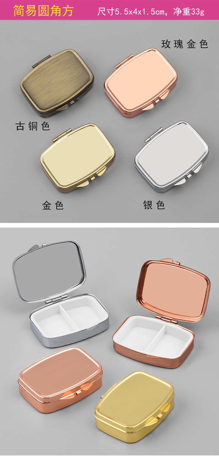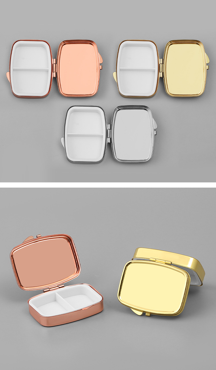 일본식 밀폐 콤팩트 메탈 화장품 거울 약 케이스 야외 휴대용 귀여운 미니 3 칸 수납 먼지스토어 가기