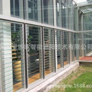 独创的玻璃百叶系统:洁净通透 的玻璃百叶,清凉灵动的生活气息,悄然演绎为现代装饰流行元素,在高效遮阳的同时,绝对尊重您对开阔视野的追求.玻璃百叶系统,,装饰与自然风景的完美结合 .玻璃百叶的开启的角度可以随意调节(0-90度),室内人员可以获得变换的视觉效果,百叶对风力和风向具有调节作用,可以使室内享受到柔风带来的美好感觉.可安装于各种类型的窗户。