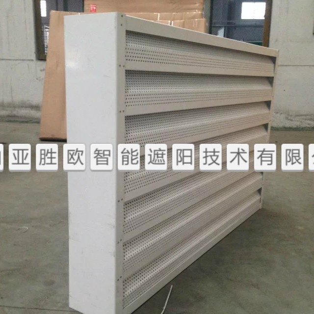 消音百叶窗制作采用铝板或钢板单面打孔,叶片呈梯形状排列重叠固定在边框上,打孔面朝室内,达到吸音效果。