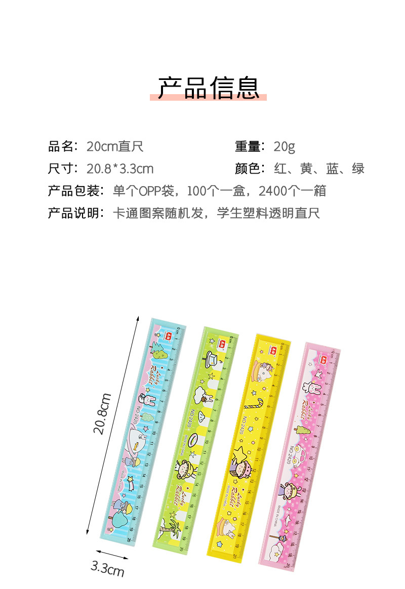 학생 만화 눈금자 문구 용품 어린이 높은 외관 20cm 물결 모양의 선 그리기 플라스틱 눈금자 도매