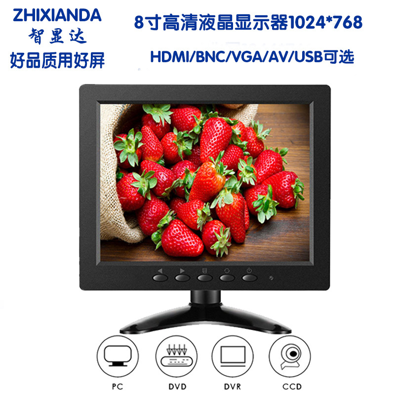 8寸显示器 IPS屏 产品接口:HDMI BNC VGA AV USB 分辨率 : 1024*768