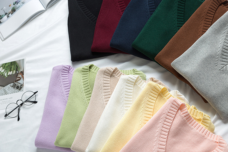 뜨개질 공장 도매 21 색 JK 유니폼 솔리드 컬러 조끼 일본 v 넥 풀오버 가을 겨울 스웨터 양복 조끼 니트웨어