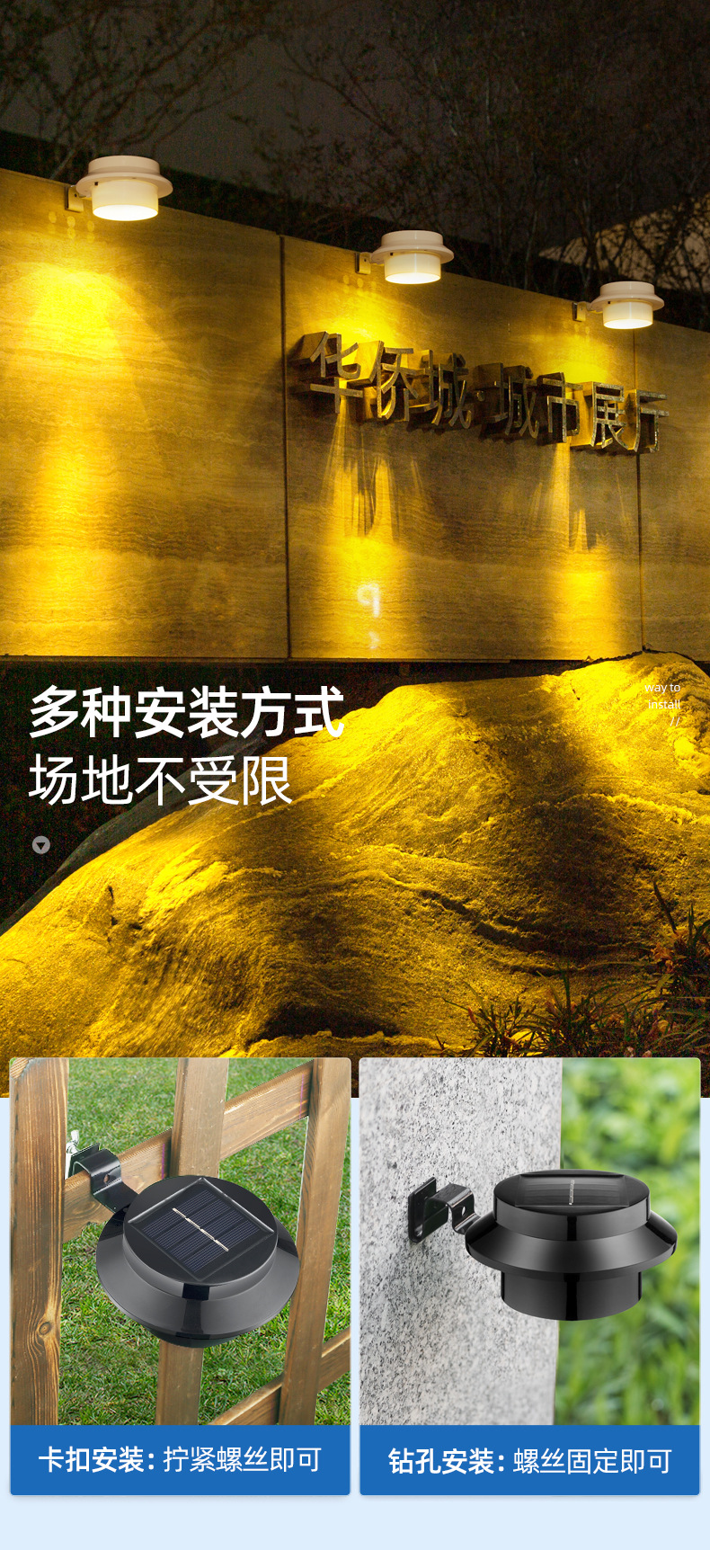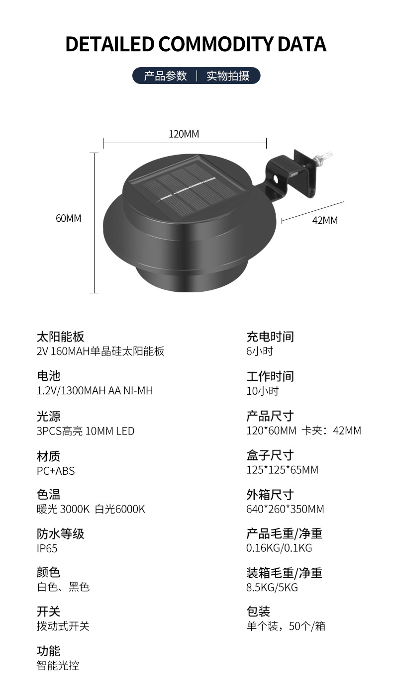 대외 무역 태양 정원 램프 홈 빌라 장식 야외 정원 벽 조명 울타리 야외 램프