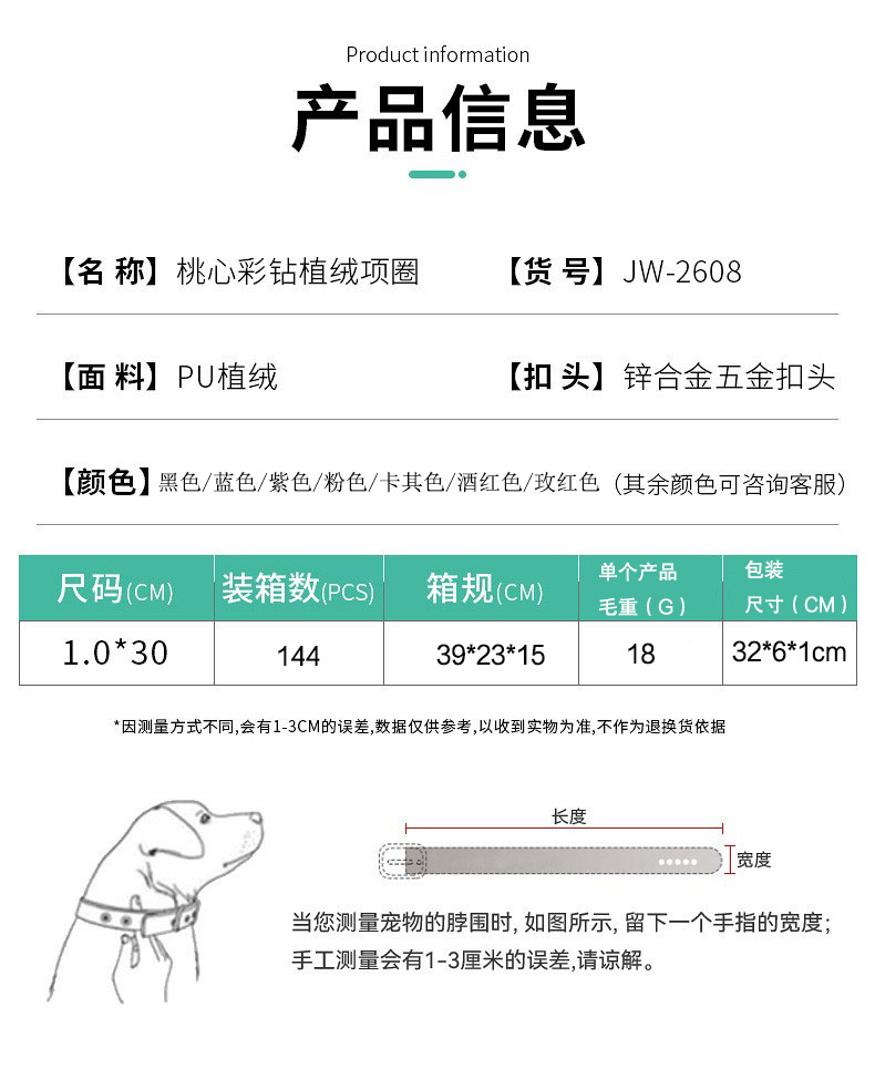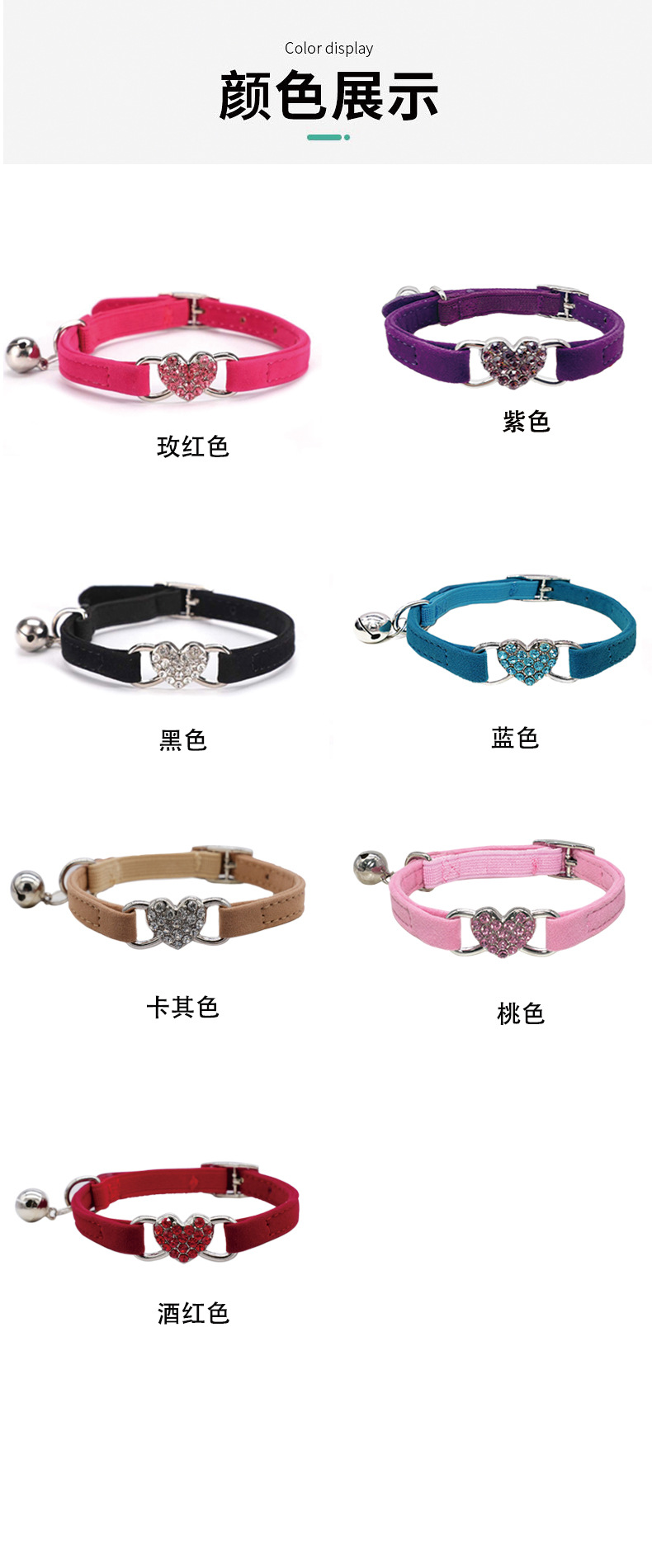 [Jinwen] 애완 동물 고양이 목걸이 라인 석 목걸이 pu 복숭아 하트 모양의 작은 개 개 견인 목걸이 애완 동물 액세서리