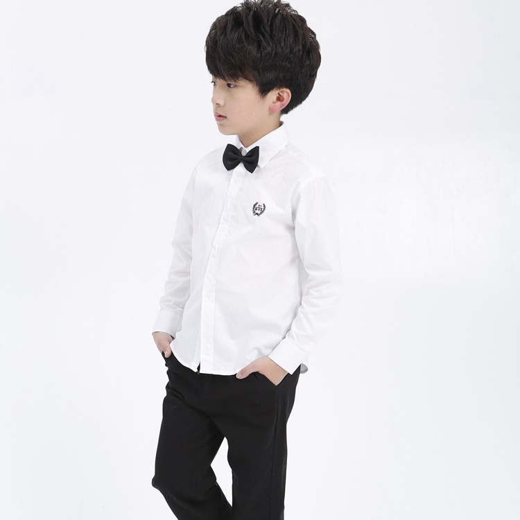 • 소년 긴 소매 흰색 자수 라벨 없음