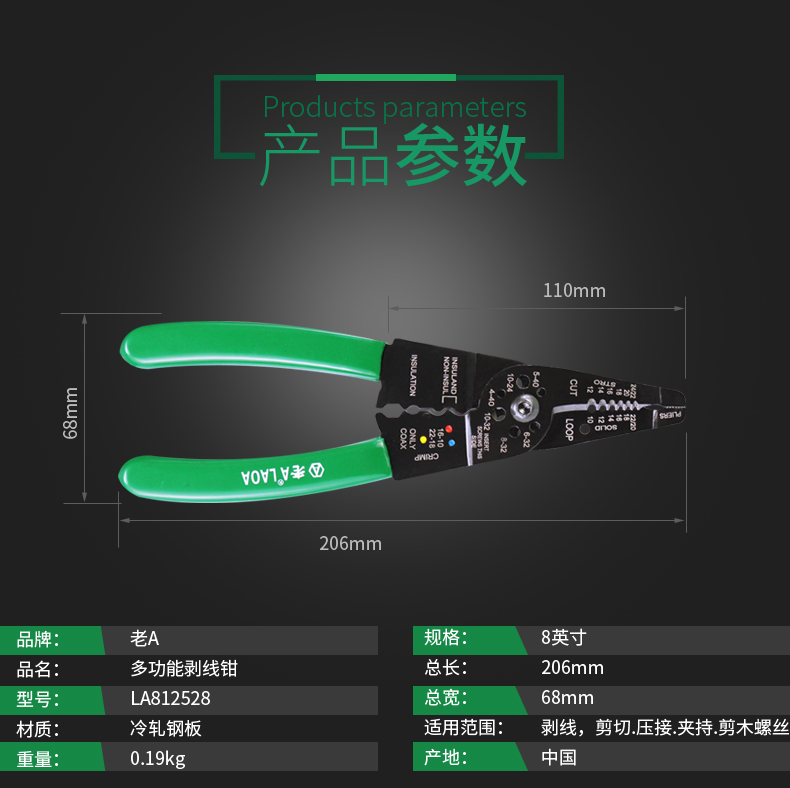 오래된 8 인치 다기능 와이어 스트리퍼 압착 플라이어 냉간 압착 플라이어 와이어 스트리퍼 전기 공구 LA812528스토어 가기