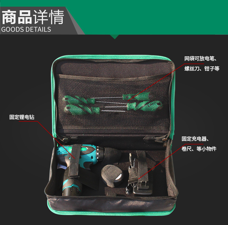 오래된 이중층 두꺼운 전기 드릴 백 다기능 수리 키트 12V 리튬 전기 드릴 핸드백 LA212813스토어 가기