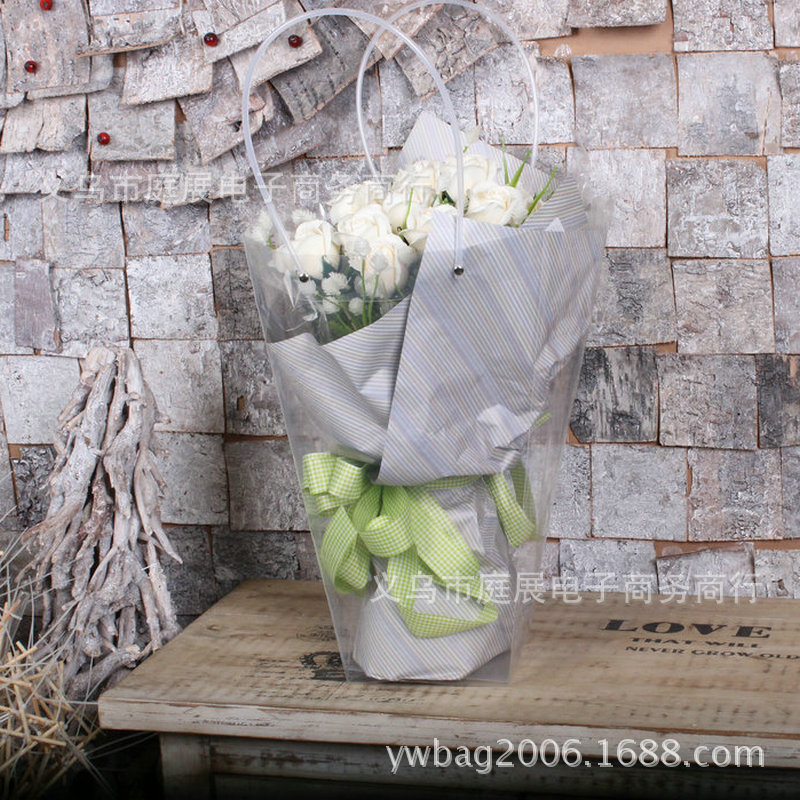 韩国客人定购的环保梯形方形花袋多余尾单,100%新料,采用18丝透明PP材料,皮管拎手,高档耐提,一包10个,不拆买不混色,请看清楚尺寸再拍哦!