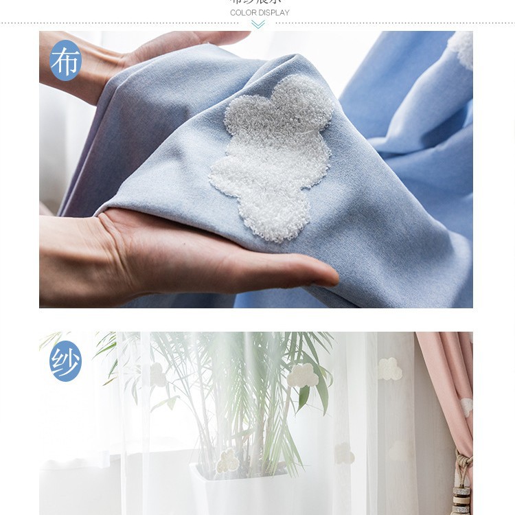 수 놓은 구름 푸른 직물 커튼 직물 두꺼운 창 스크린 침실 거실 어린이 방 소년과 소녀 만화 베이 창스토어 가기