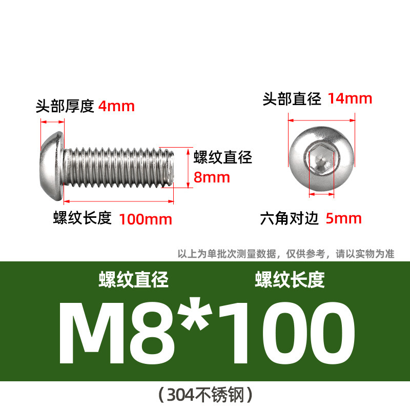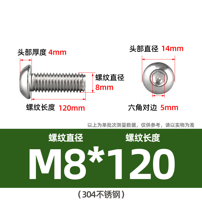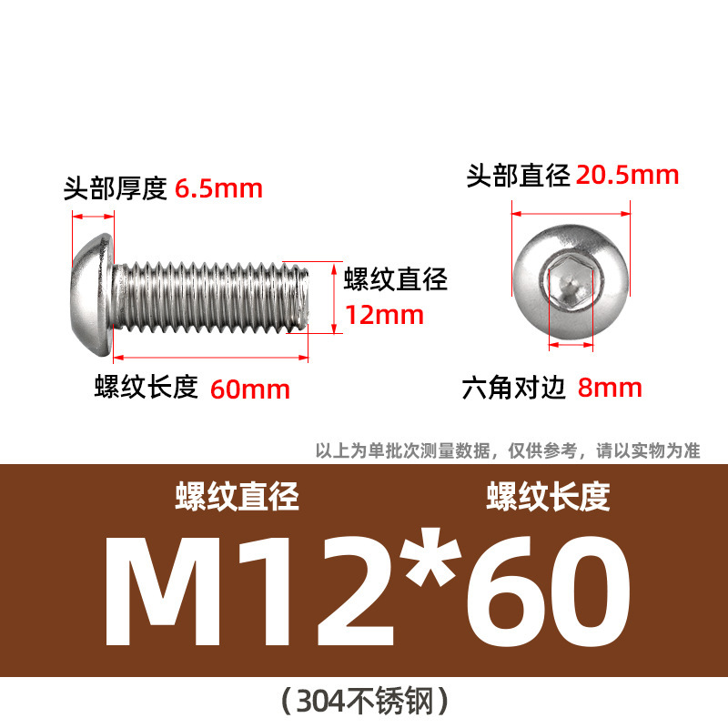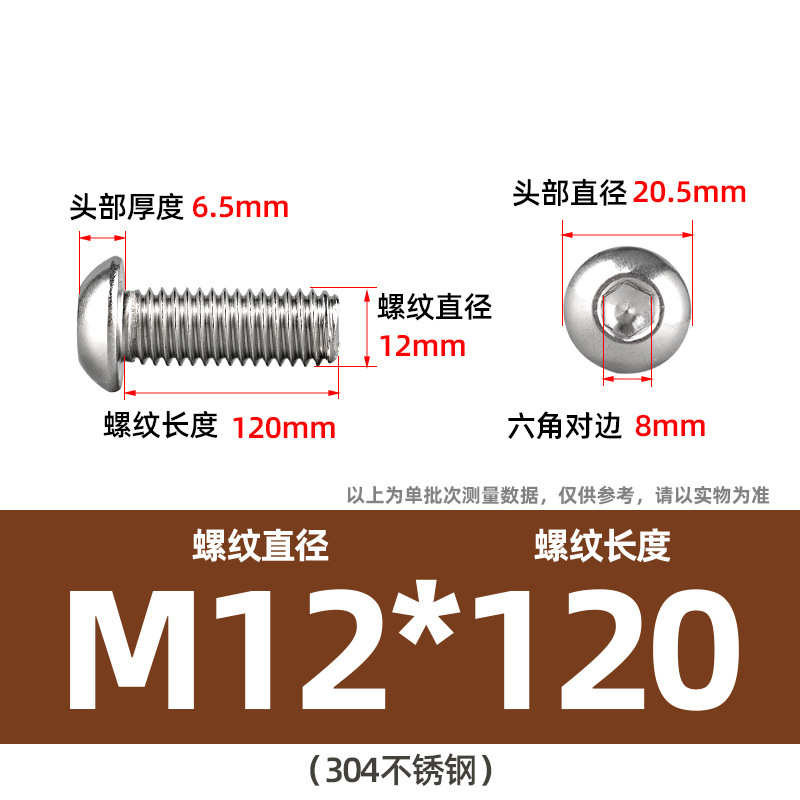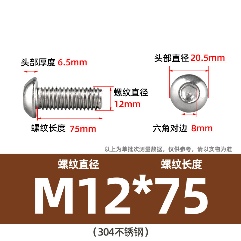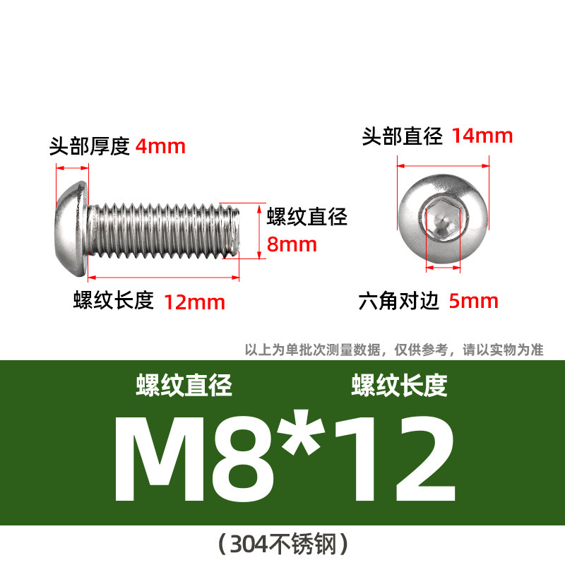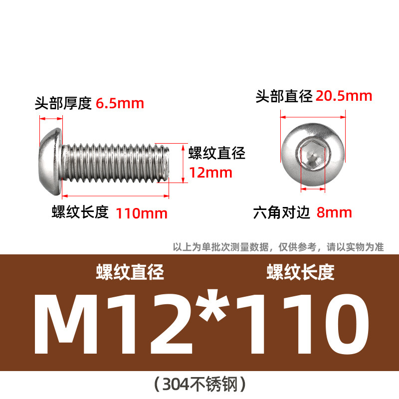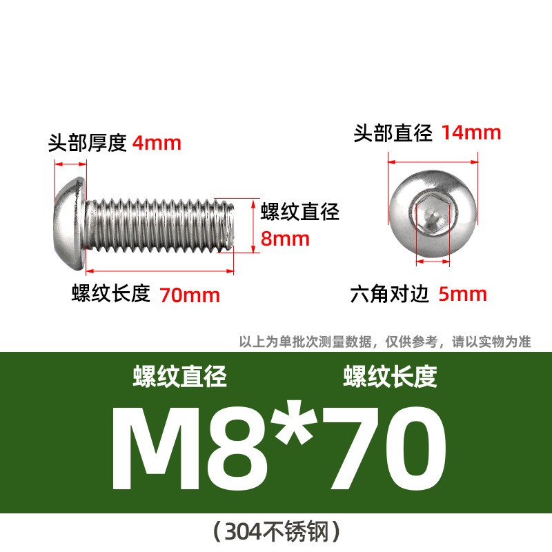 304 스테인레스 스틸 라운드 헤드 육각 소켓 헤드 나사 도매 하프 라운드 헤드 팬 헤드 육각 소켓 헤드 나사 M6M8M10M12
