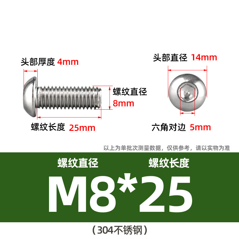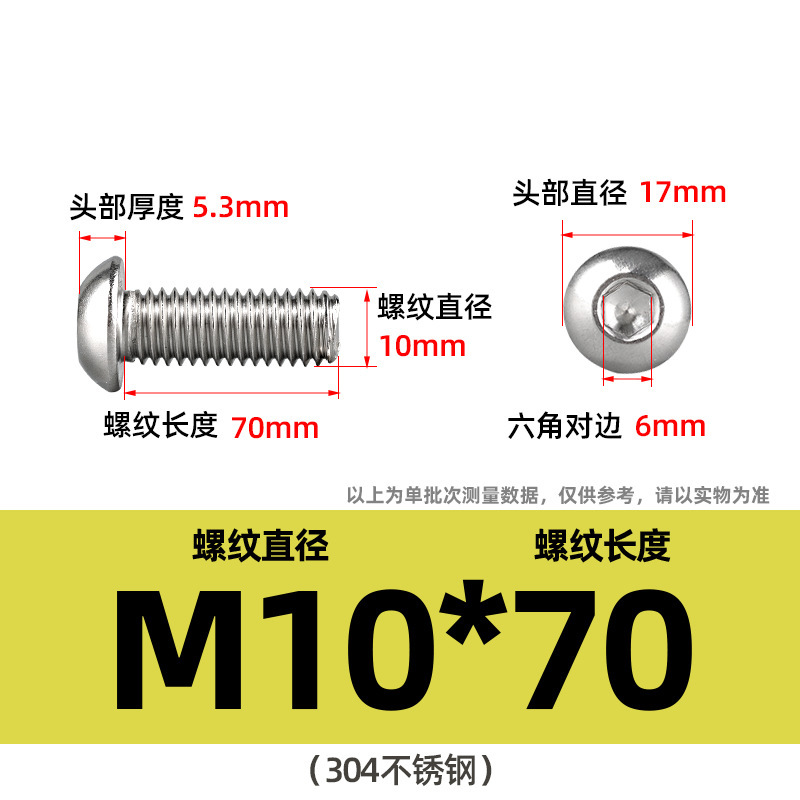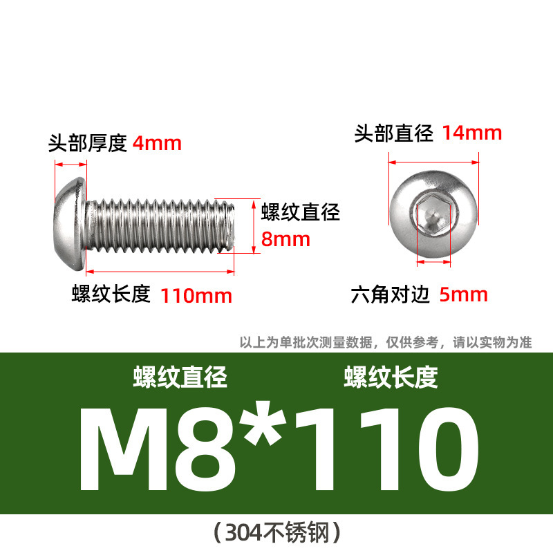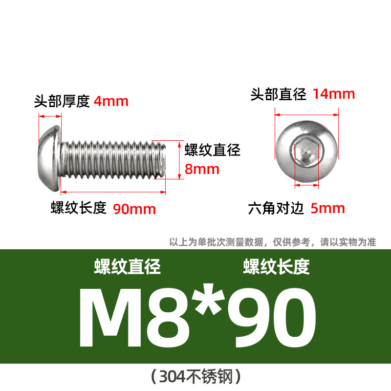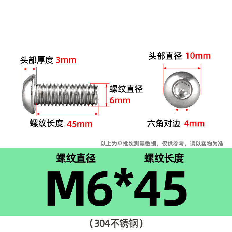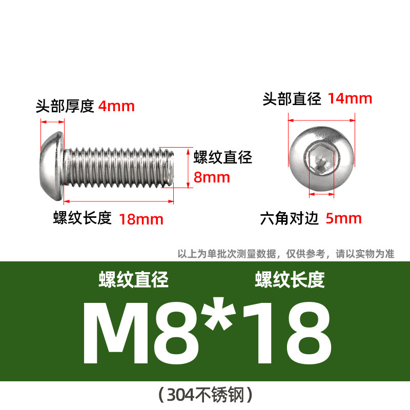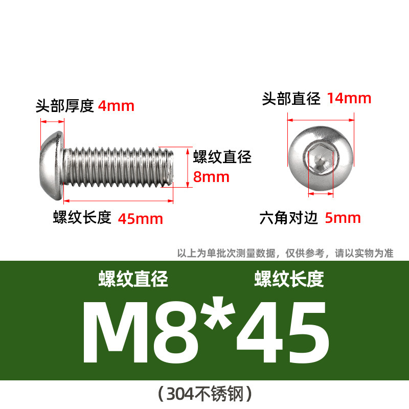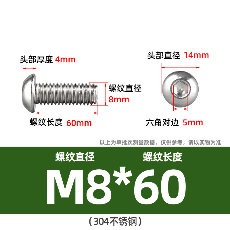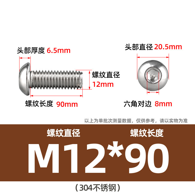 304 스테인레스 스틸 라운드 헤드 육각 소켓 헤드 나사 도매 하프 라운드 헤드 팬 헤드 육각 소켓 헤드 나사 M6M8M10M12