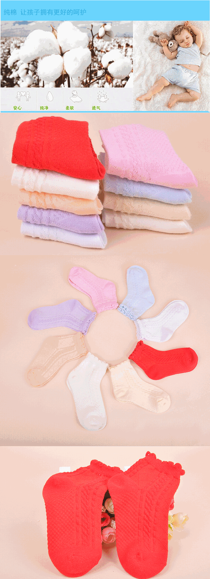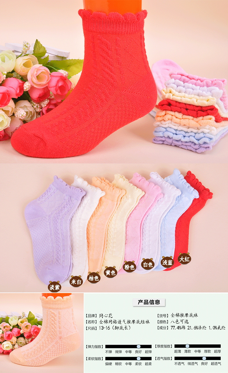 어린이 양말 순수 코튼 마사지 바닥 어린이 양말 여름 얇은 통기성 편안한 내마 모성 소년과 소녀 양말 도매