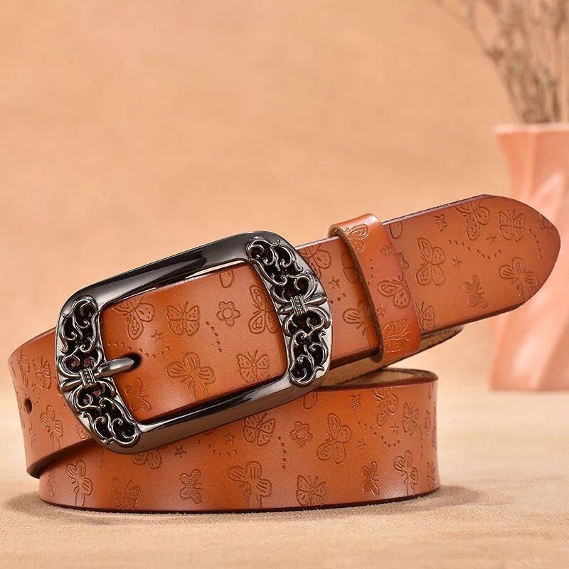 [소스 제조업체] 레트로 핀 버클 벨트 여성용 정품 가죽 한국식 캐주얼 모든 매치 벨트 패션 장식 와이드스토어 가기