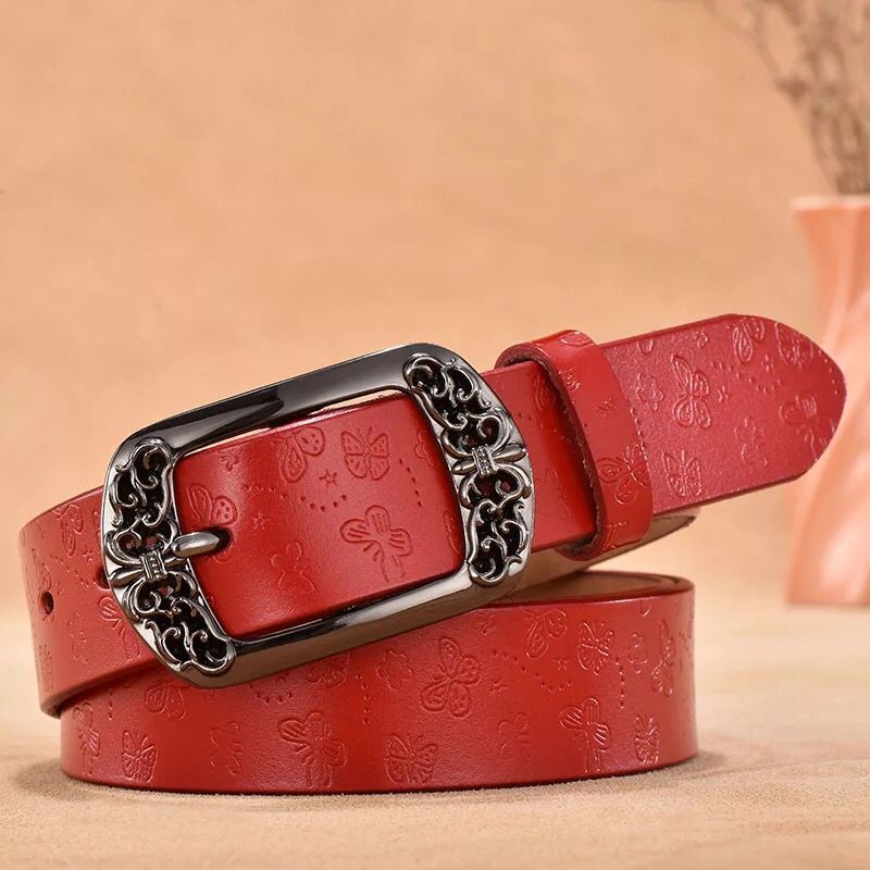 [소스 제조업체] 레트로 핀 버클 벨트 여성용 정품 가죽 한국식 캐주얼 모든 매치 벨트 패션 장식 와이드