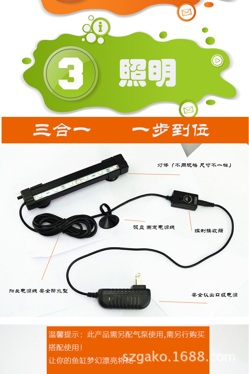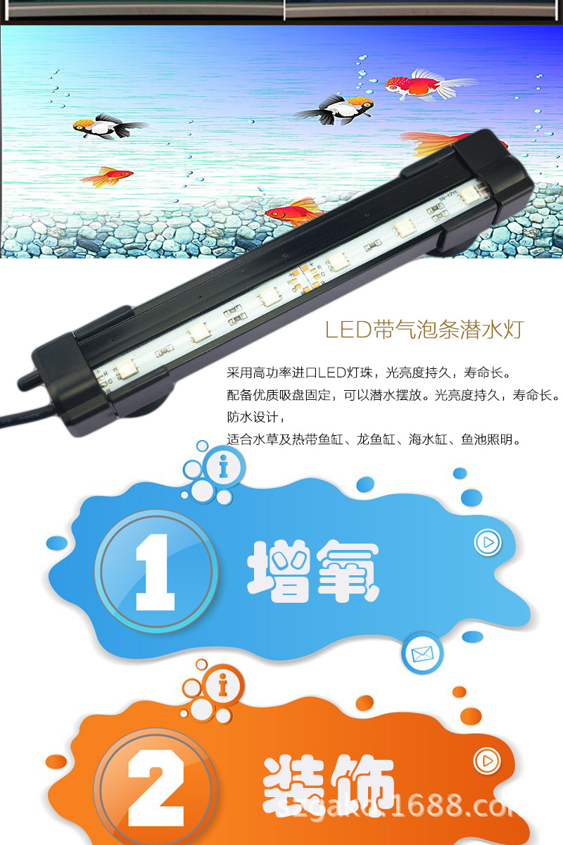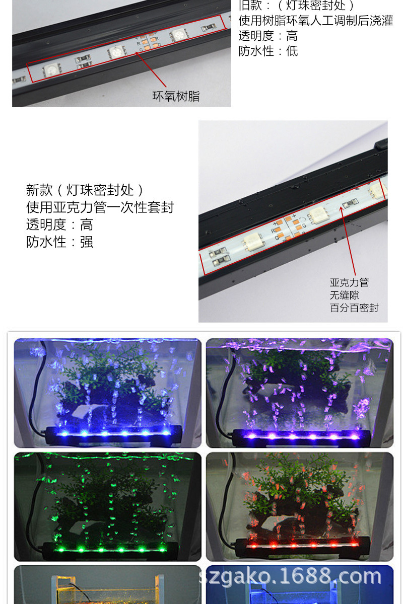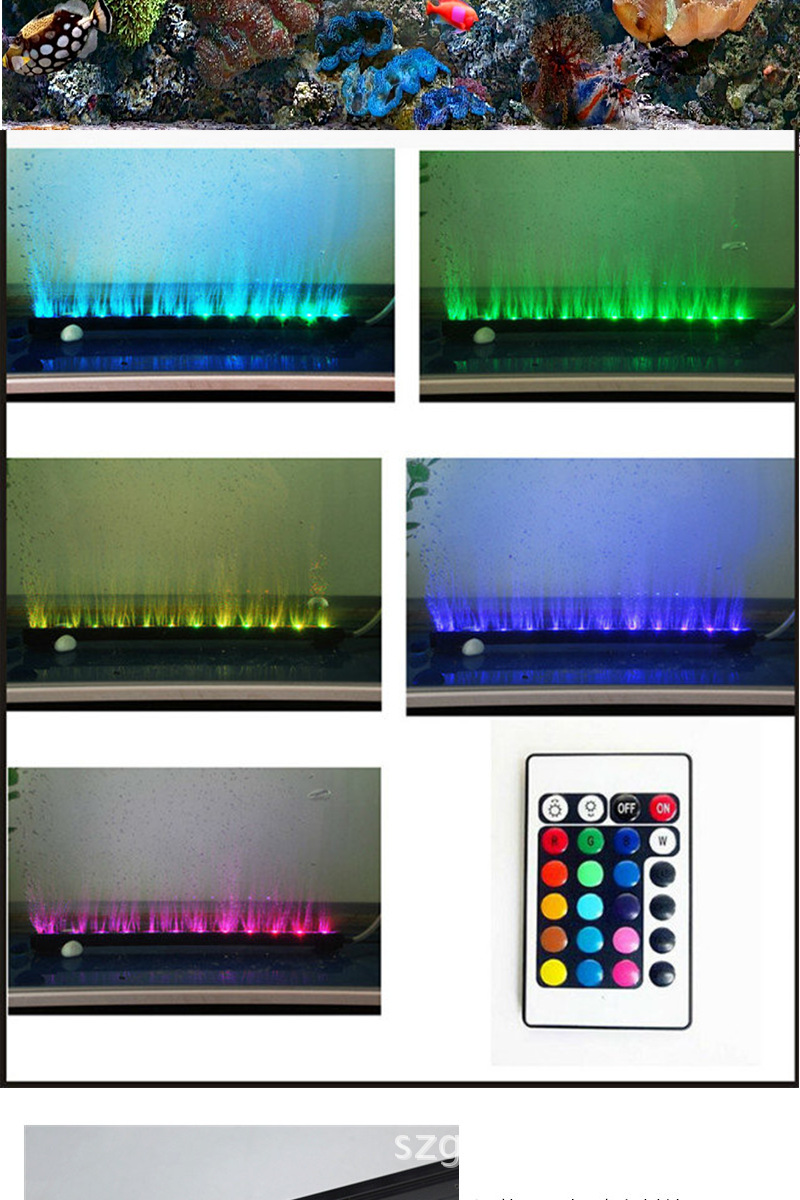 鱼缸LED气泡灯瀑布式七彩灯带遥控变色led节能潜水灯氛围鱼缸灯