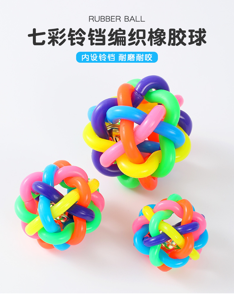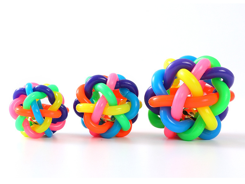 다채로운 벨 공 작은 부드러운 고무 땋은 공 강아지 씹는 소리 애완 동물 장난감 공 애완 동물 용품 도매스토어 가기