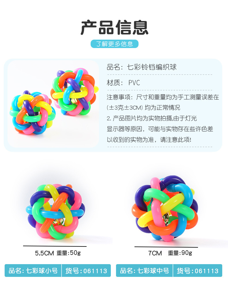 다채로운 벨 공 작은 부드러운 고무 땋은 공 강아지 씹는 소리 애완 동물 장난감 공 애완 동물 용품 도매