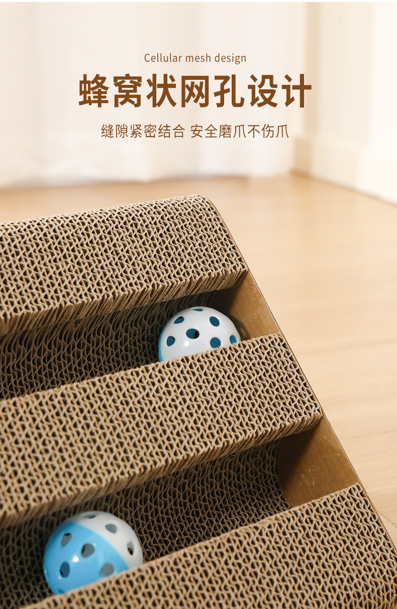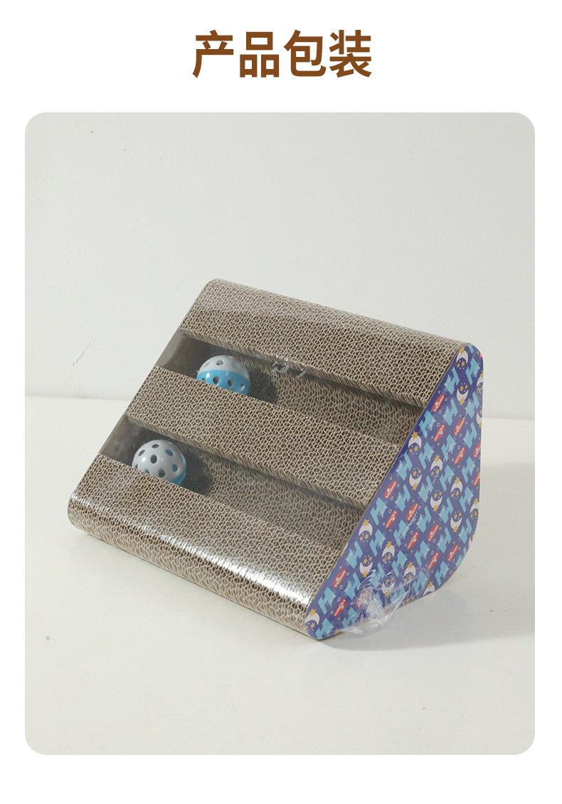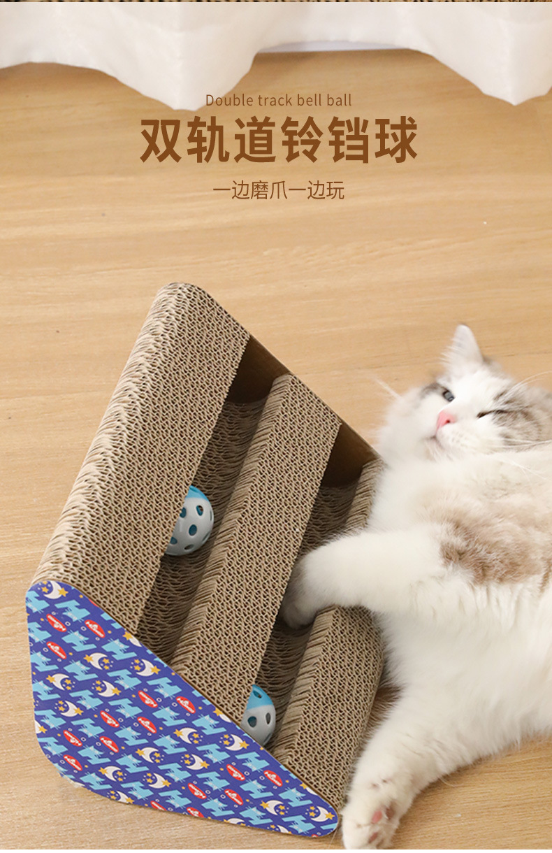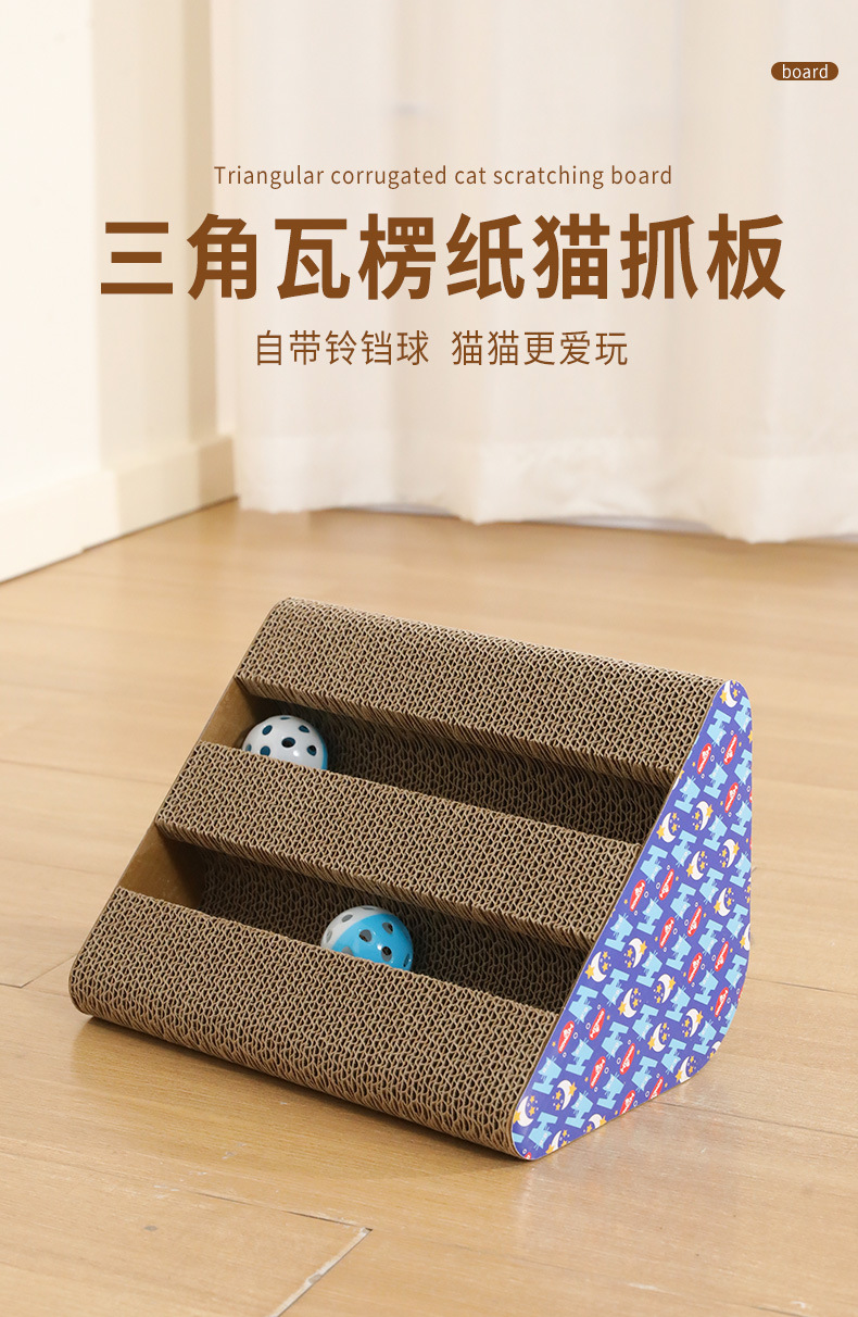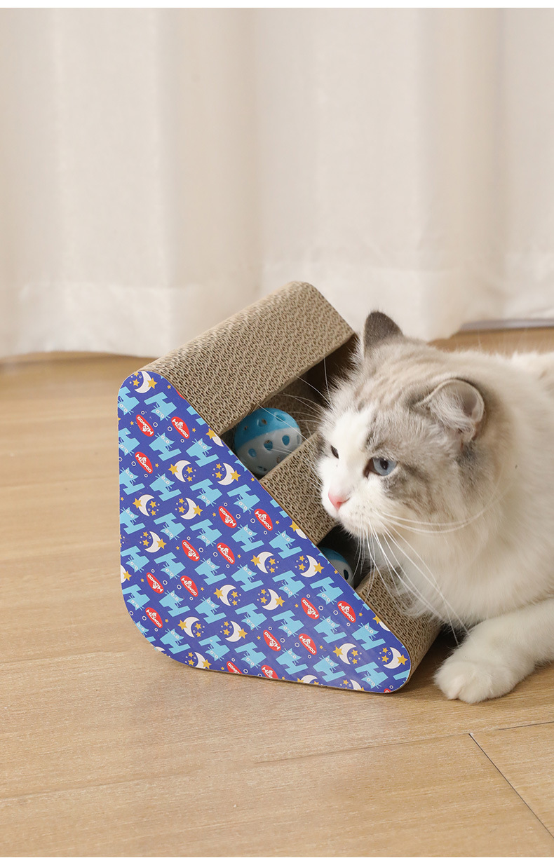 • 이중 슬롯 삼각형 골판지 고양이 긁는 기둥 (벨 볼 색상은 무작위입니다)