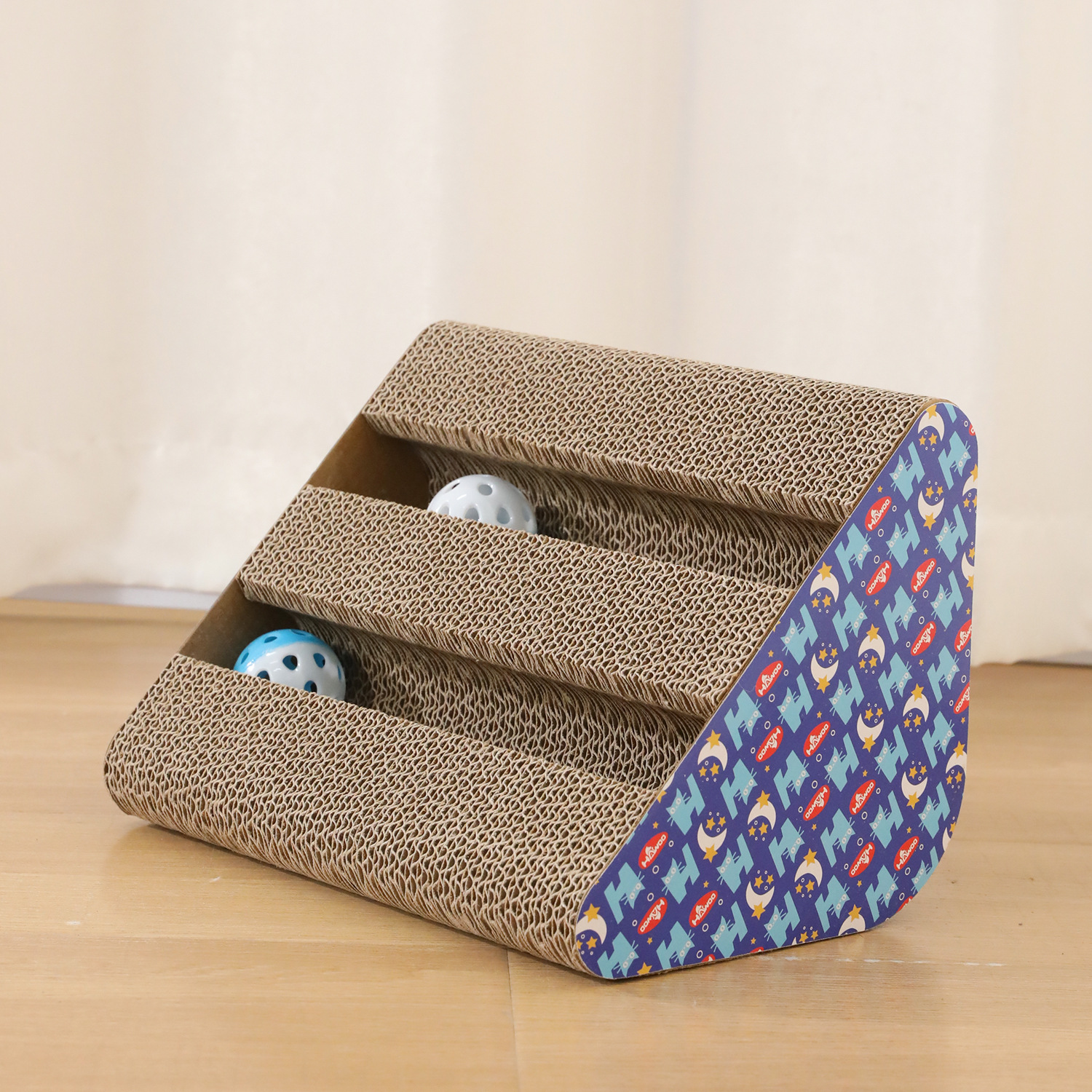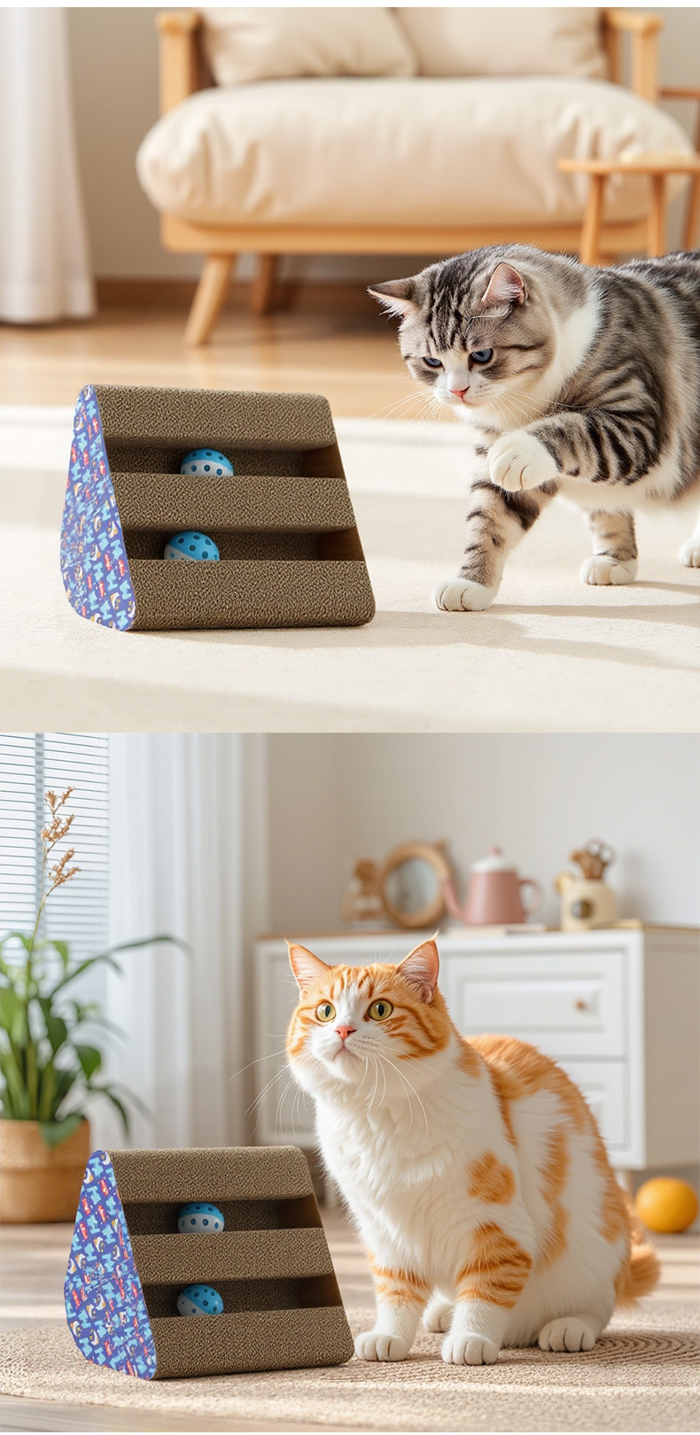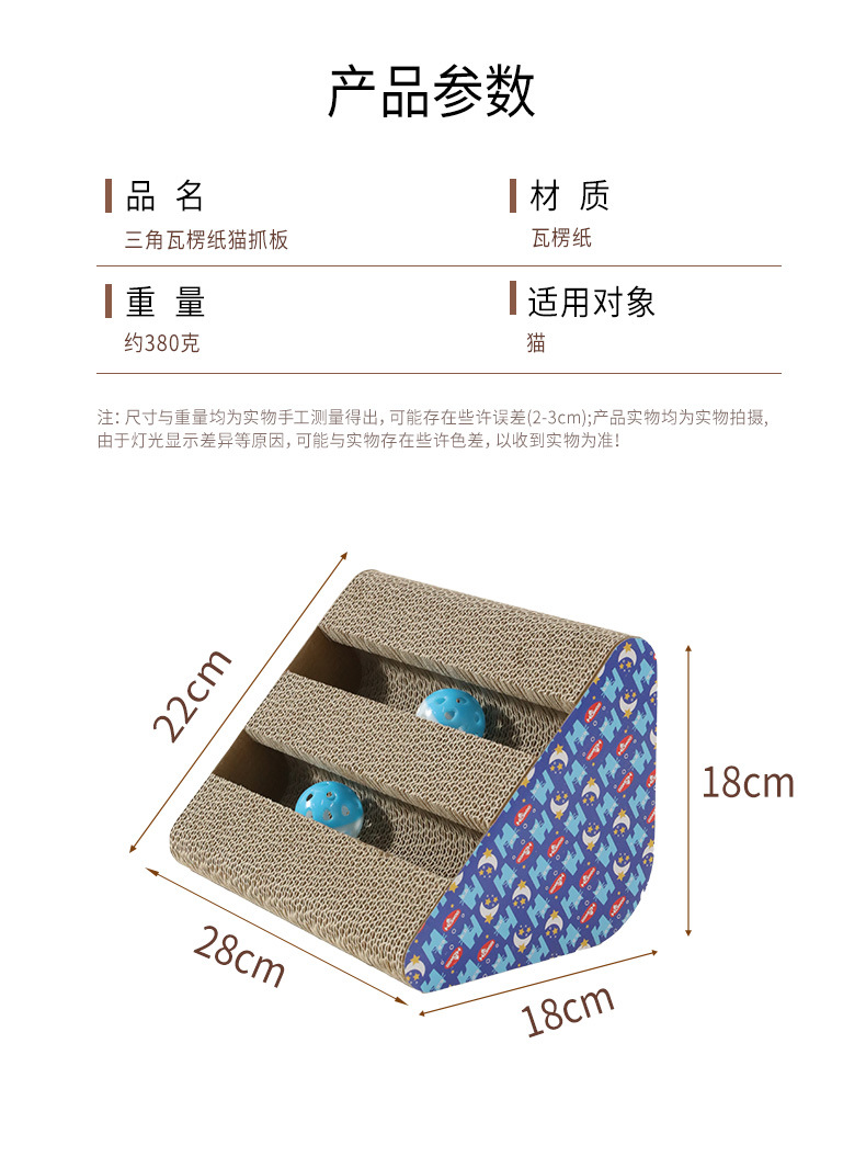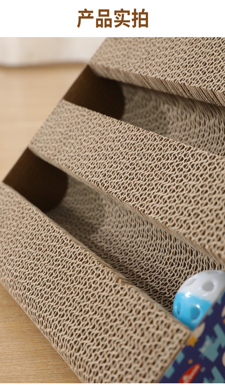 • 이중 슬롯 삼각형 골판지 고양이 긁는 기둥 (벨 볼 색상은 무작위입니다)