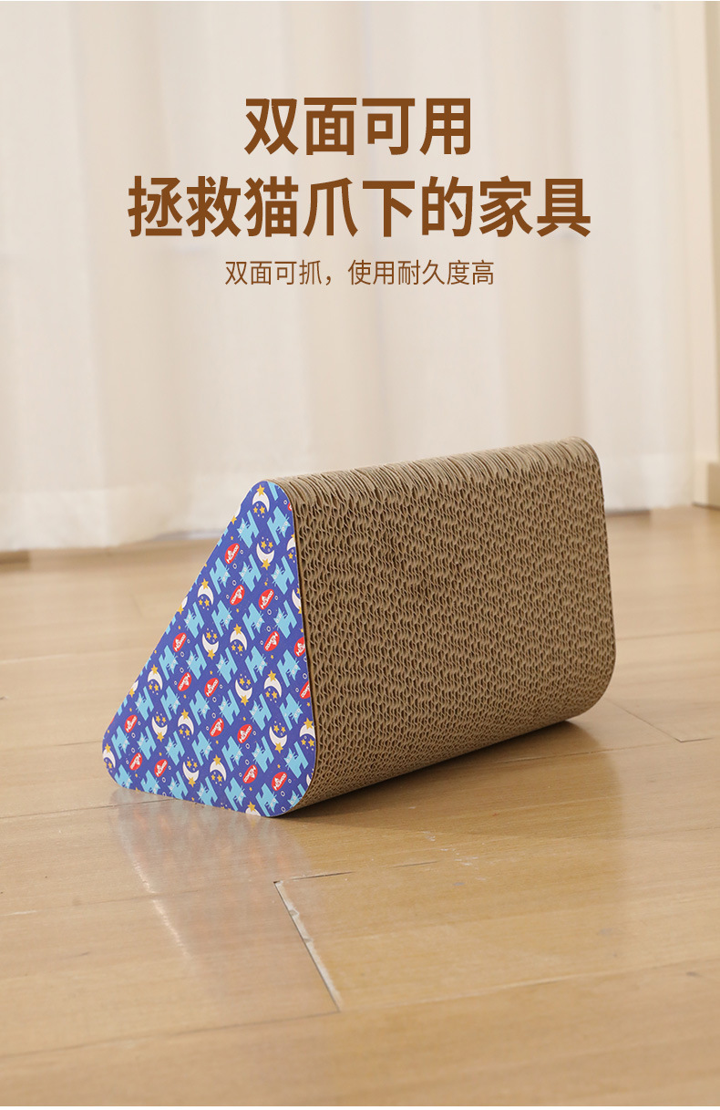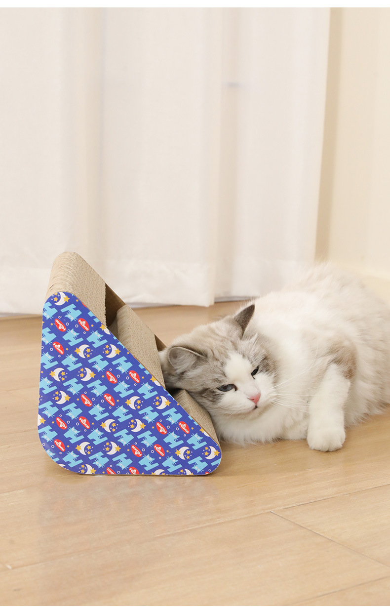 P 벨 삼각형 골판지 고양이 스크래치 보드 애완 동물 고양이 발톱 분쇄기 고양이 장난감 도매 단면 이중 홈스토어 가기