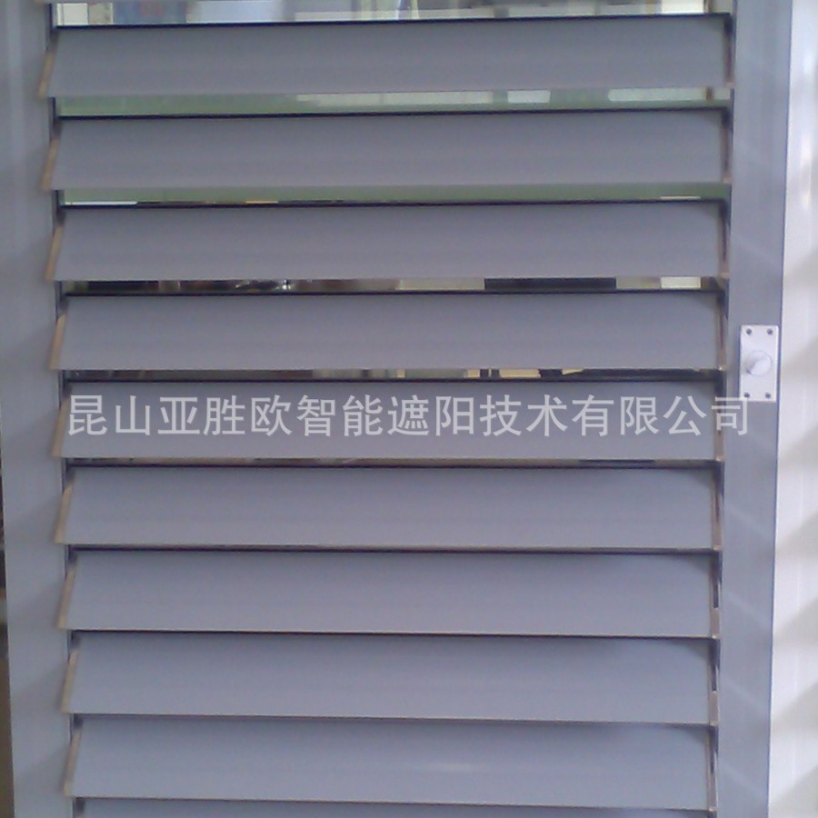 由于叶片之间连接处有防水槽及防水胶条,叶片两端同边框有毛条密封,故叶片完全闭合时可达到阻隔暴风雨的密闭效果;同时,此时的气密性能也达到密封要求,中空的叶片结构能有效提高室内的保温效果。