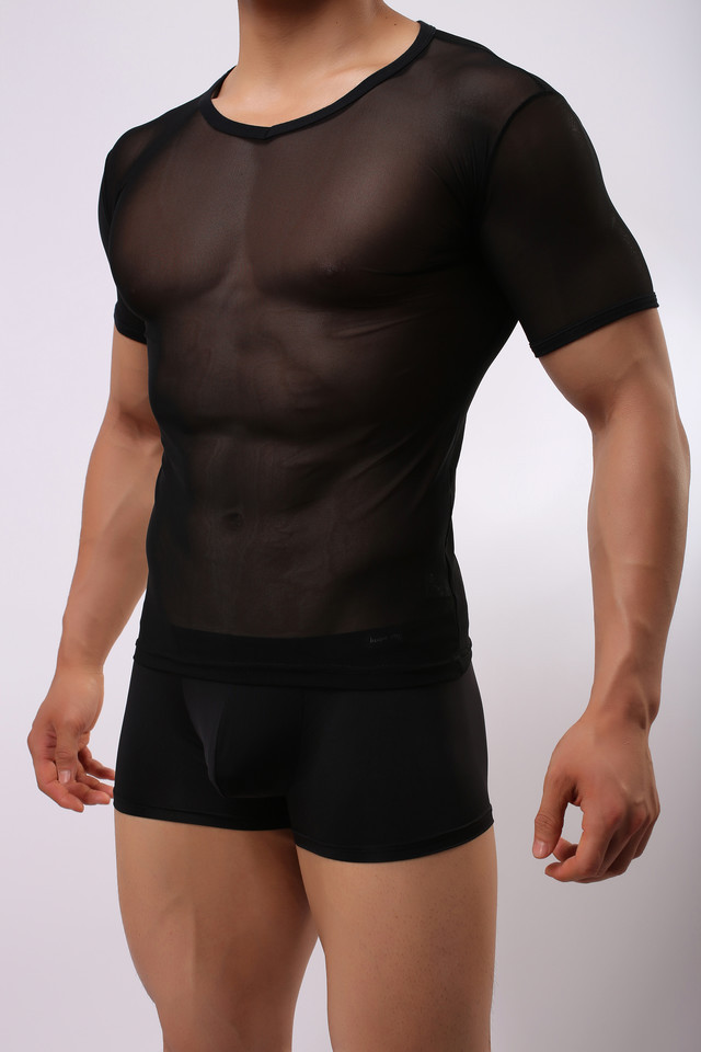 남자의 단단한 근육 치열한 남자의 섹시한 메쉬 투명한 반팔 티셔츠 남자 통기성 스포츠 반팔 티셔츠 남자 E670스토어 가기