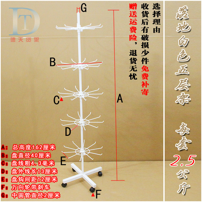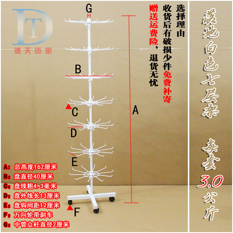 该产品为落地用,配套7层,白色,组装高度165厘米,层距可以随意调节!!一套3.5公斤,一箱8套。