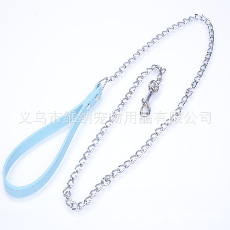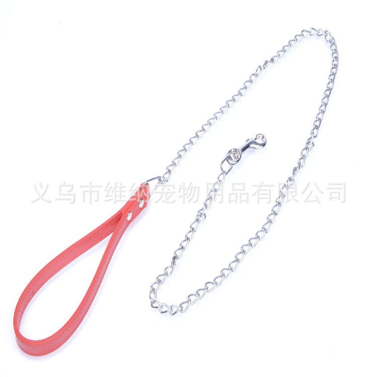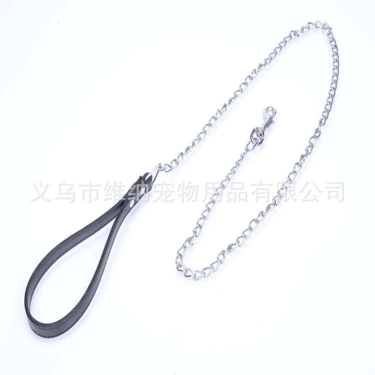 • 宠物用品厂家直销, 现货供应, 高品质镀铬铁链牵引绳, 专业生产训犬牵引绳 手柄宽1.5*长20 铁链1.0*长100CM总长120CM