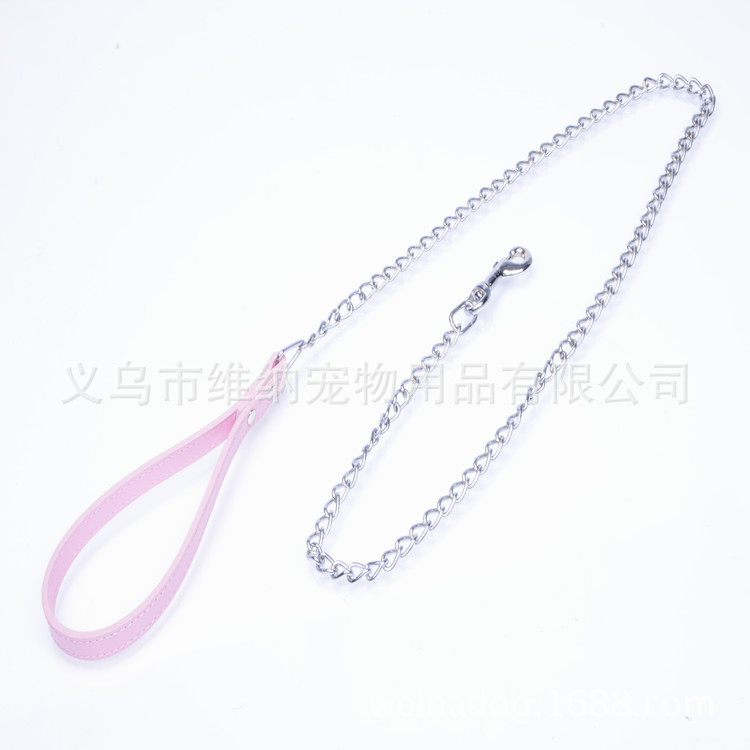 공장 핫 세일 중소 개 견인 로프 안티 바이트 크롬 도금 체인 개 로프 PU 시뮬레이션 가죽 개 체인스토어 가기