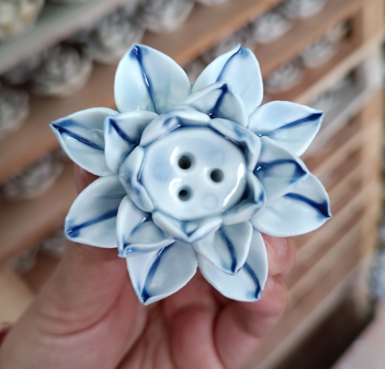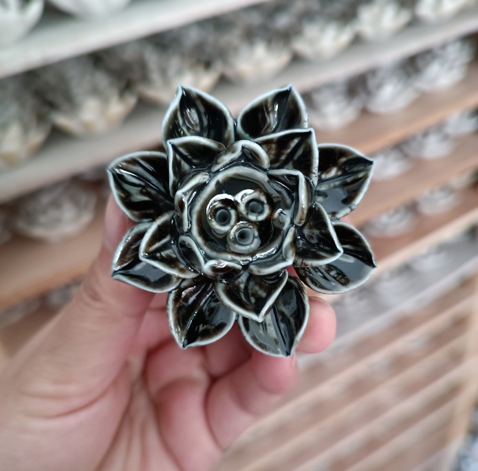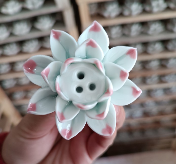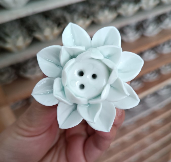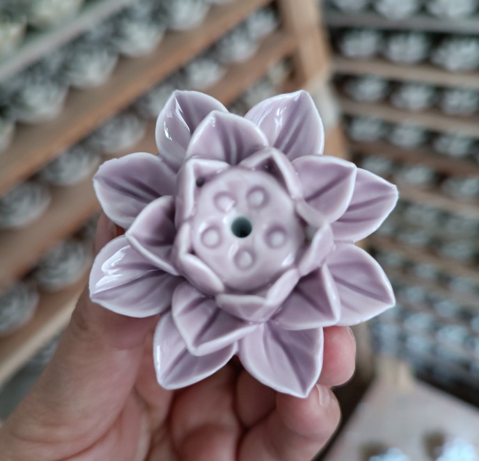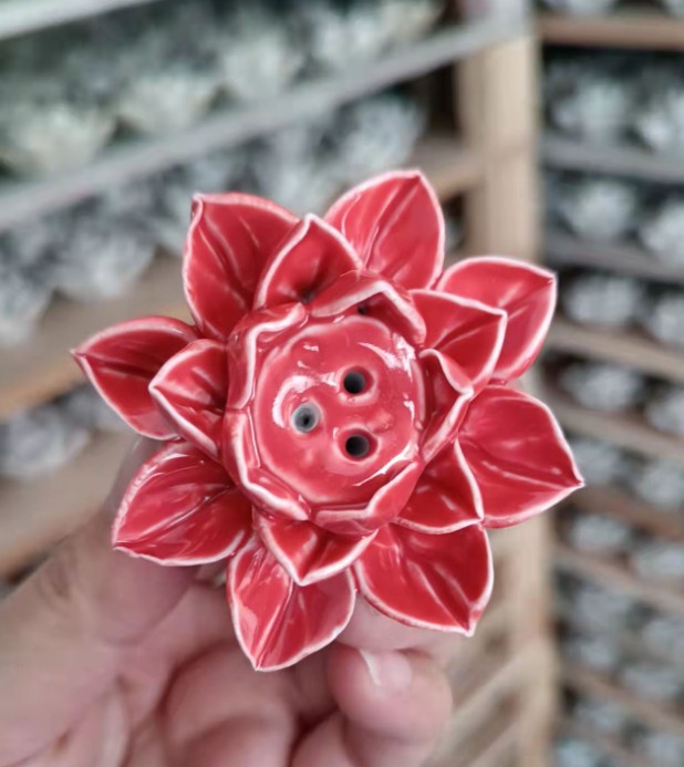 【品名】陶瓷单荷花香插