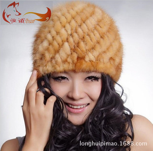 水貂毛帽子皮草帽加厚毛线斜纹菠萝帽秋冬季女款貂皮编织帽子批发