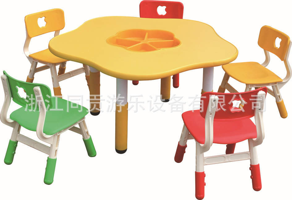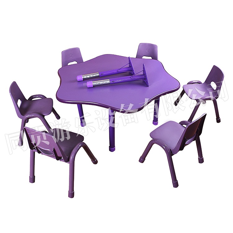 桌面边缘人性化设计,具有防滑功能,耐脏,易清洗。桌脚可根据儿童身高及不平整地面自由调节高度。