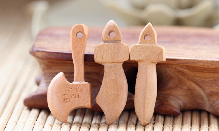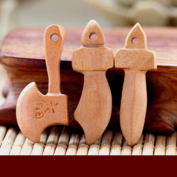 下图:浅色桃木刀剑斧(规格3厘米左右)