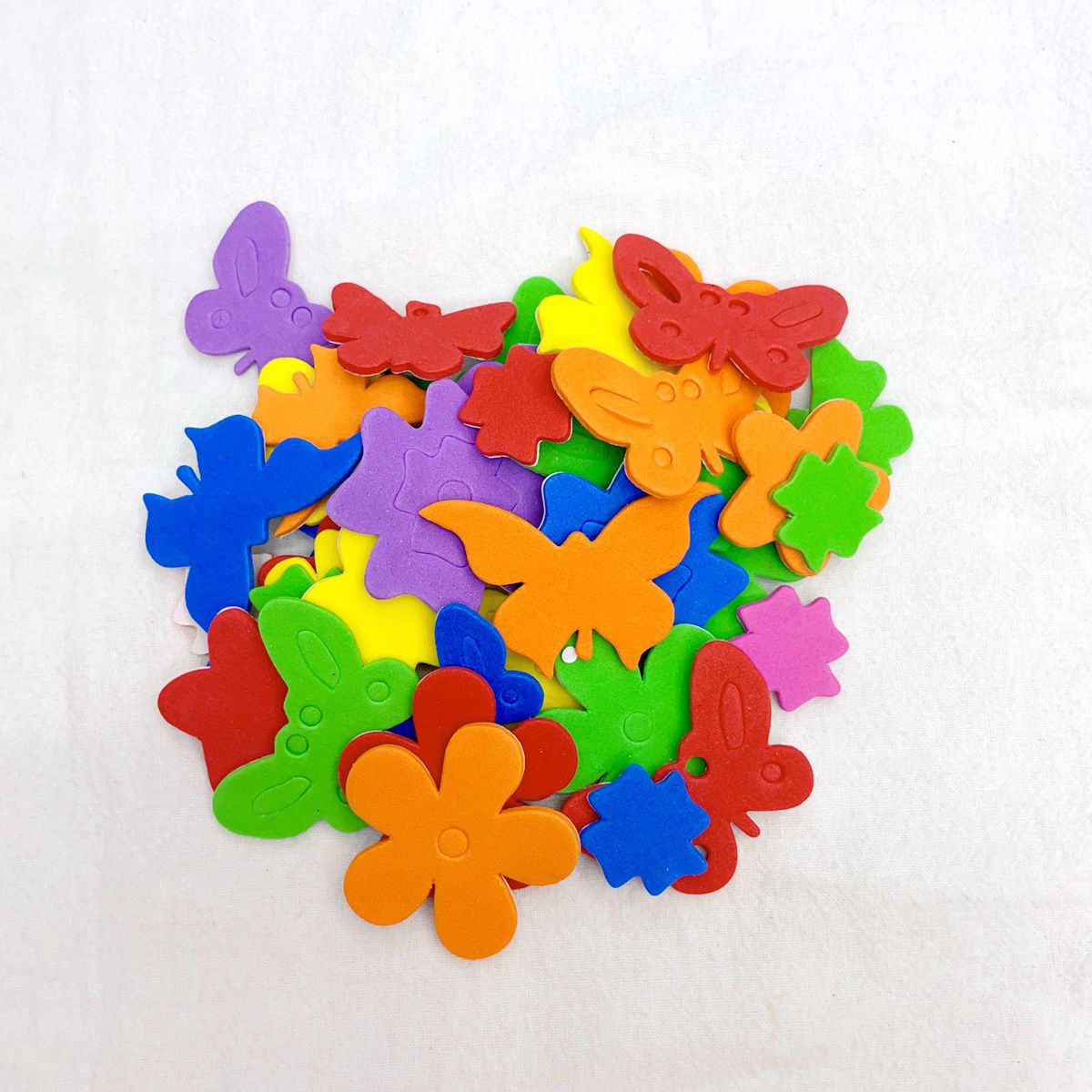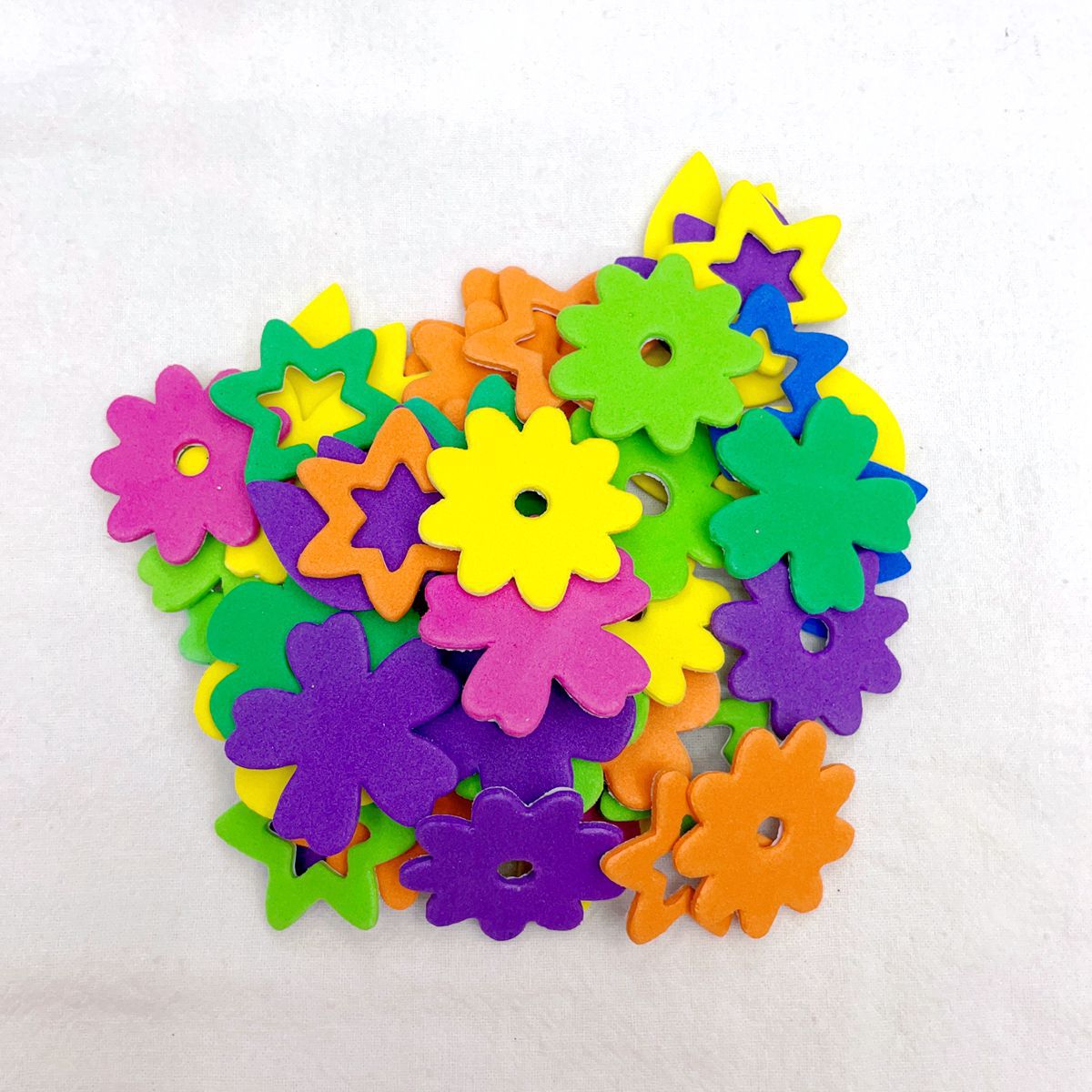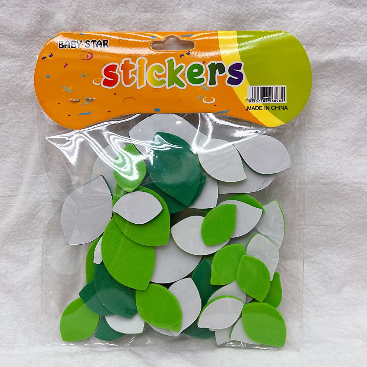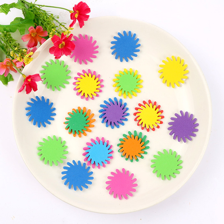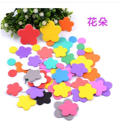 彩色EVA产品背面带胶.揭开背面纸片.不干胶就可以随意张贴.网上写的是一袋的价格,约10G 重,一包里面有30-50个之间.每包里面款式.颜色.规格不同混装.约2.5CM 3CM .3.5CM.4CM .多规格随机混装