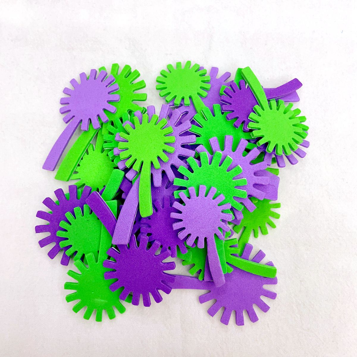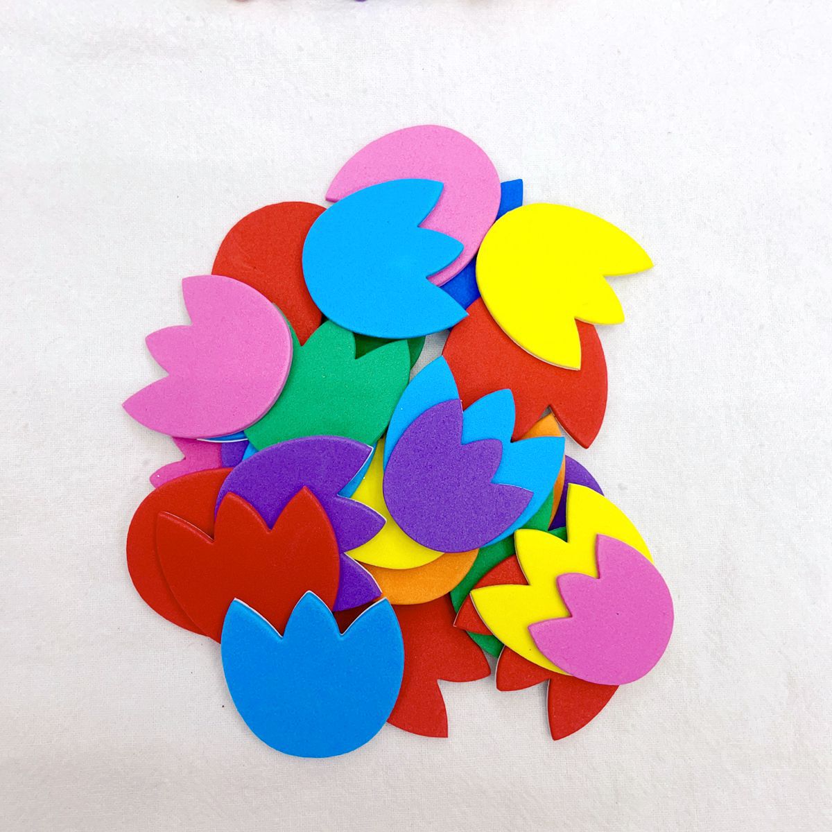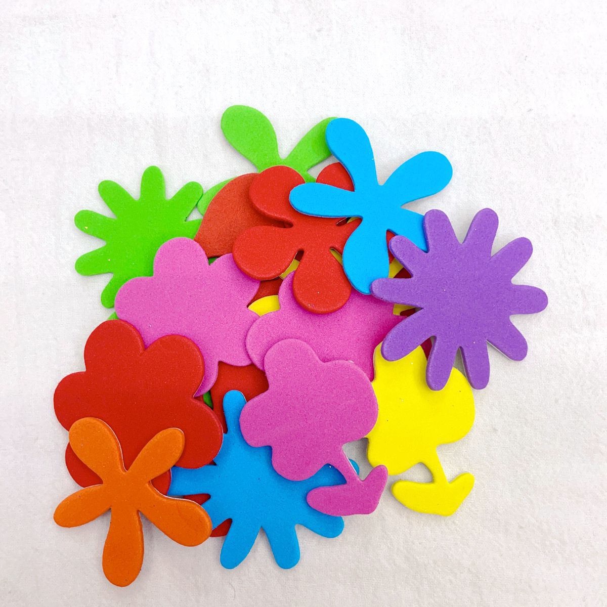 彩色EVA产品背面带胶.揭开背面纸片.不干胶就可以随意张贴.网上写的是一袋的价格,约10G 重,一包里面有30-50个之间.每包里面款式.颜色.规格不同混装.约2.5CM 3CM .3.5CM.4CM .多规格随机混装