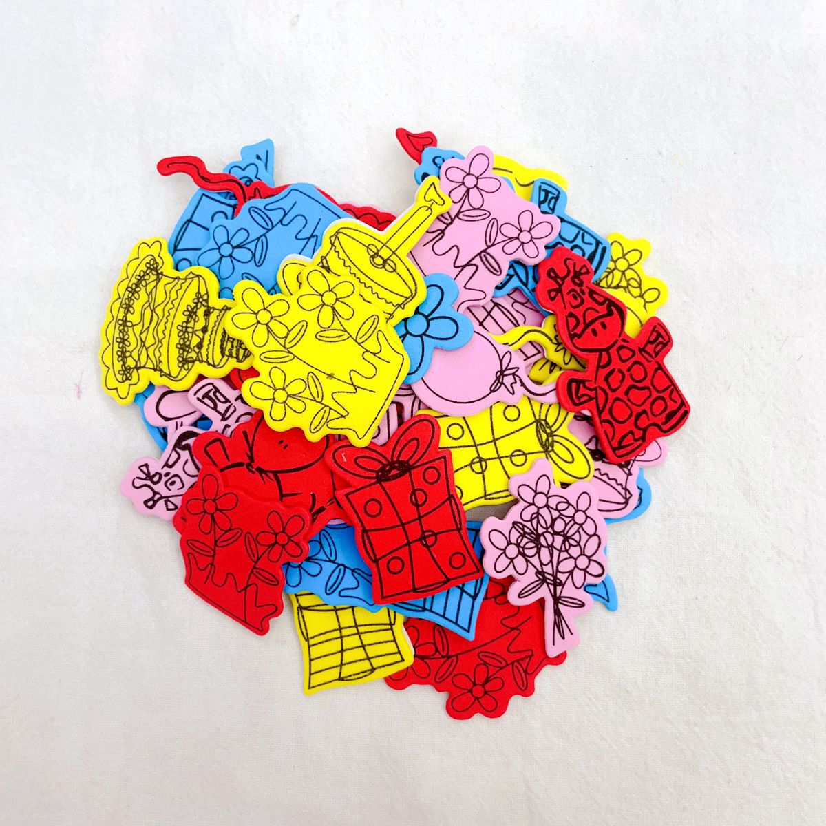 材料:彩色EVA带胶.每包里面不同规格混装.颜色混装