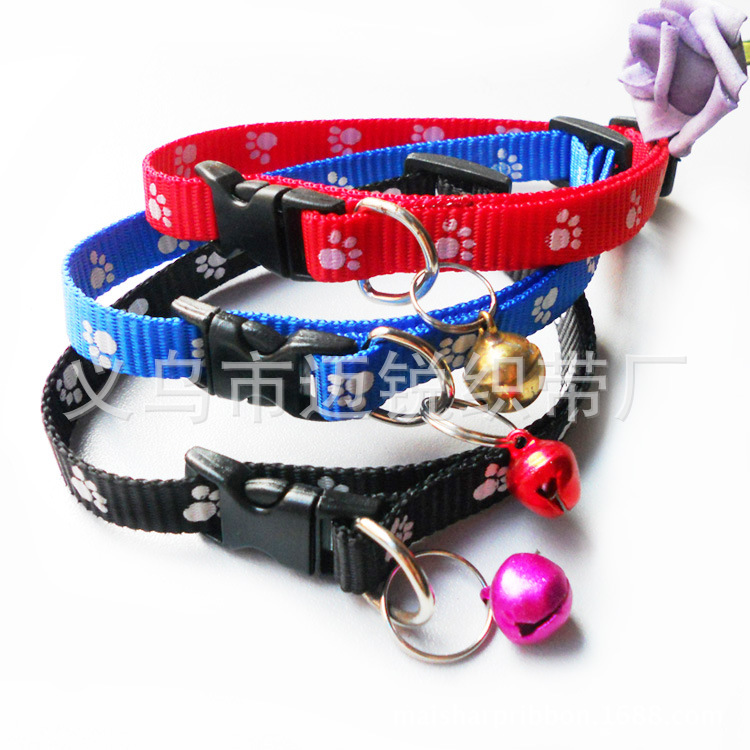 • 热卖 宠物项圈 尼龙脚印项圈带小铃铛 猫狗项圈 宠物脖套