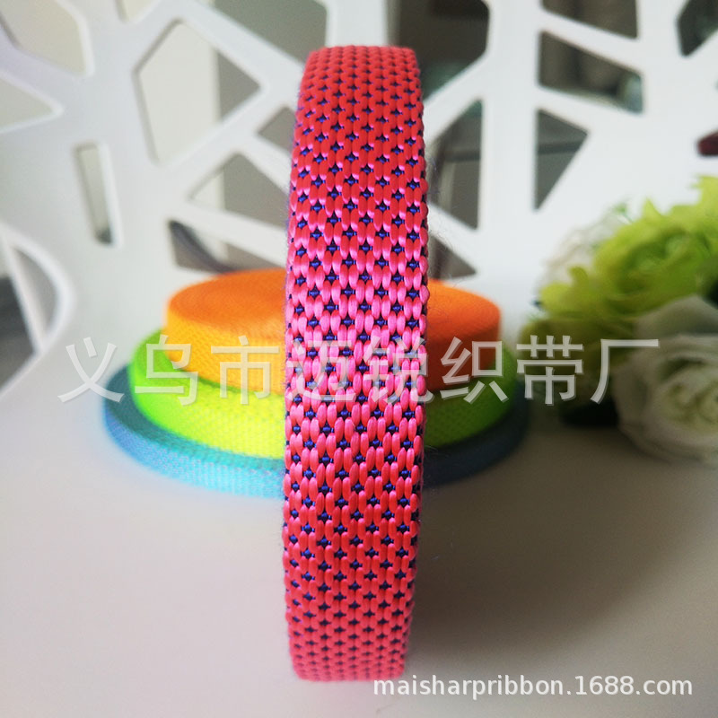 • 厂家现批 尼龙织带 尼龙斑点跳花织带 双色尼龙织带 宠物织带