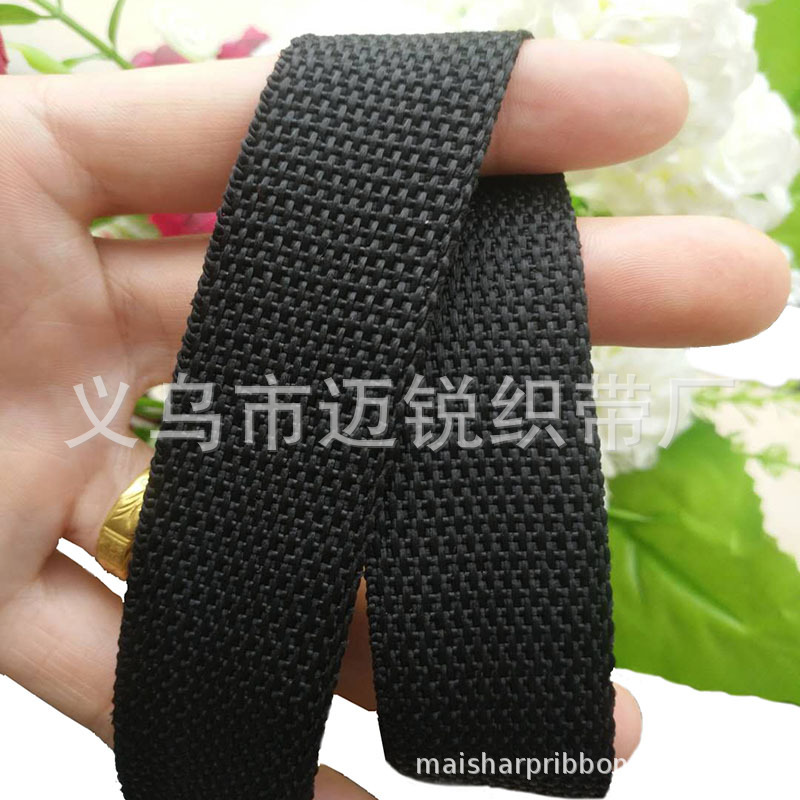 • 厂家现货黑色头盔带2cm2.5cm38珠纹平纹PP丙纶织带箱包手提带背带