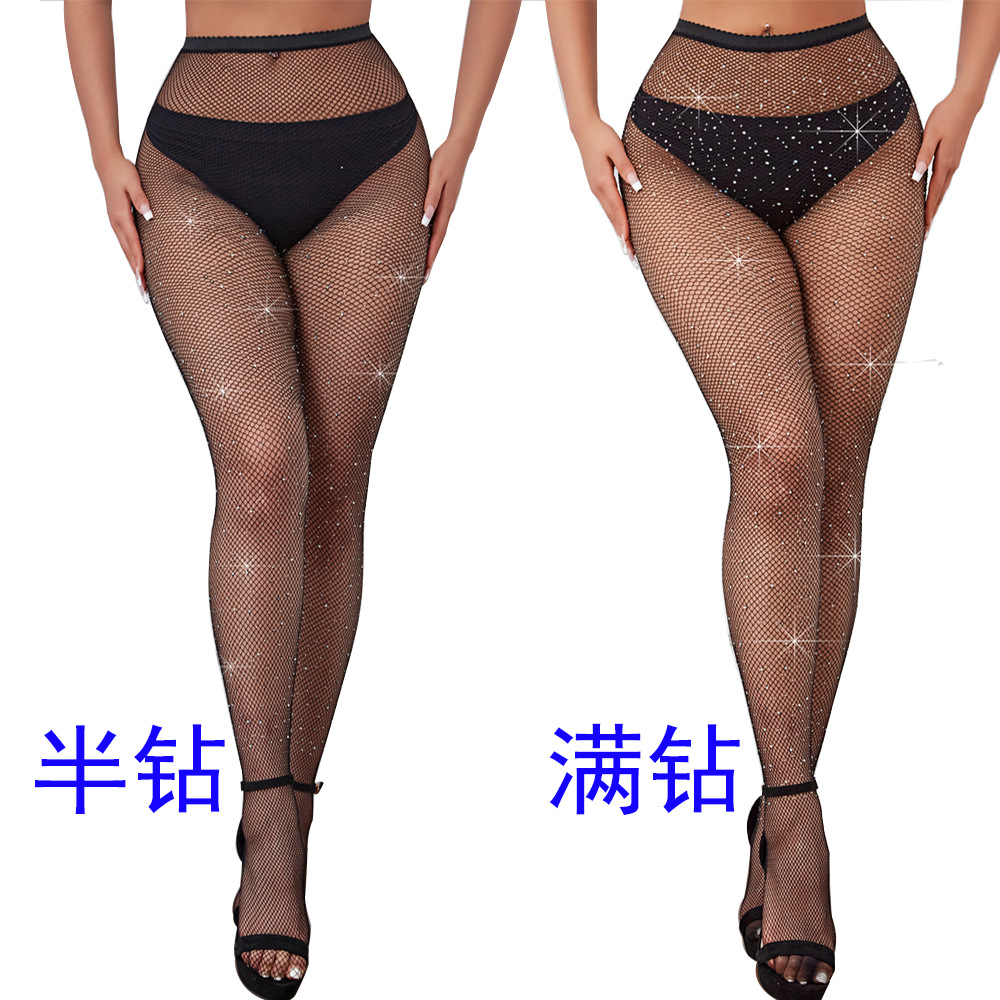 义乌工厂现货烫钻网袜小网连裤性感情趣渔网袜镂空袜女白钻袜满钻