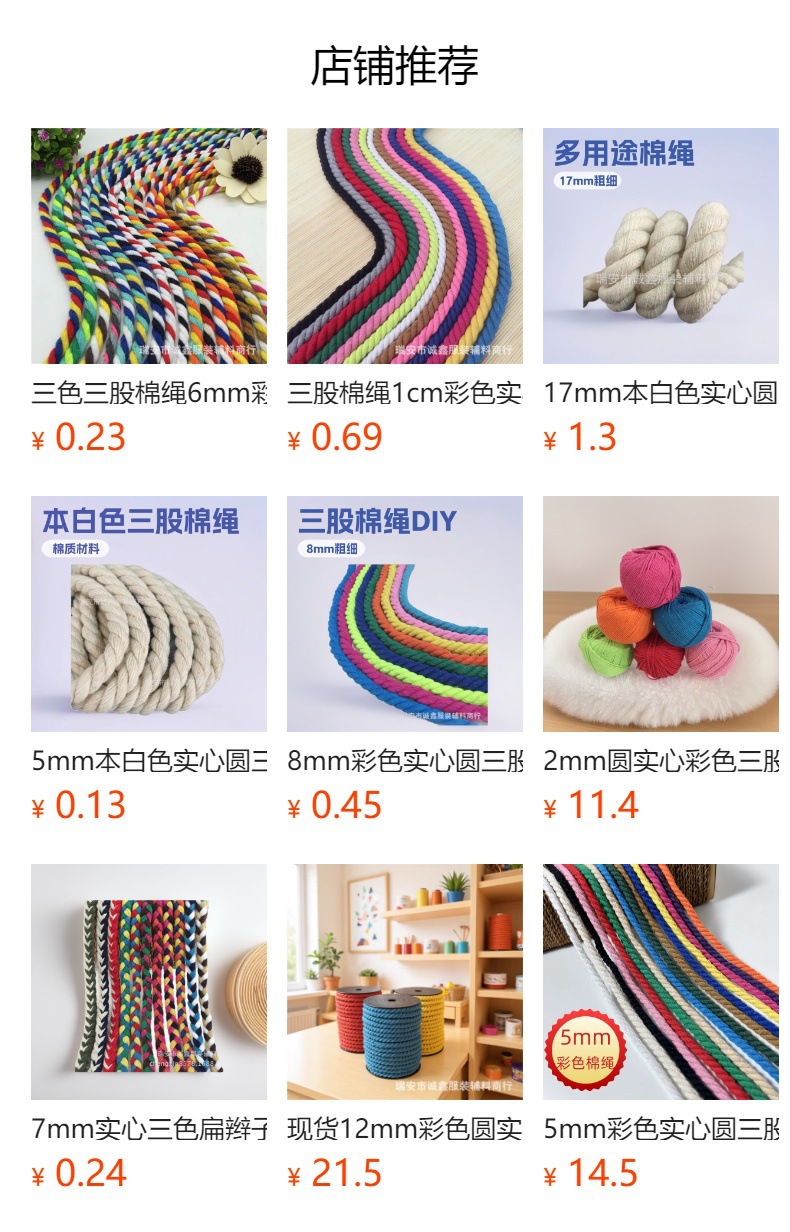 20mm 원형 컬러풀 3가닥 면끈 꼬임 로프 수제 DIY 땋은 백자 매듭 빨간색 로프 줄다리기 로프스토어 가기