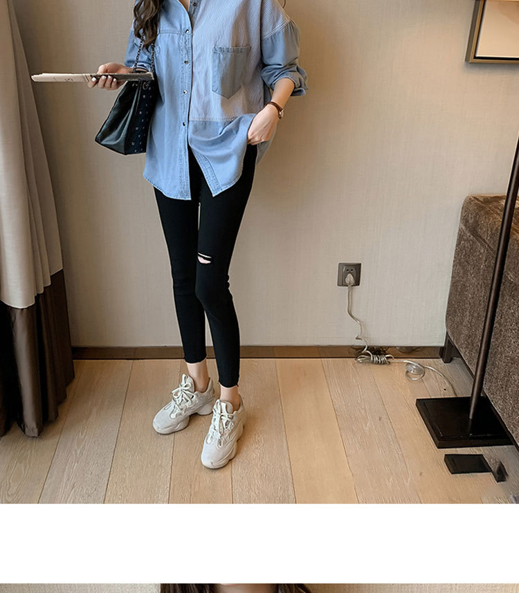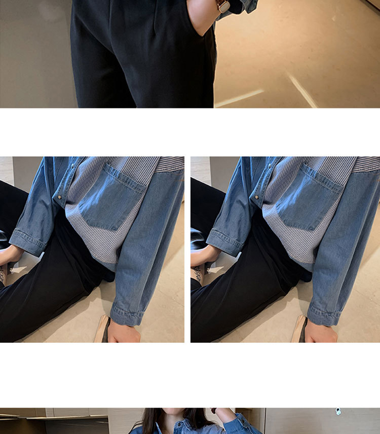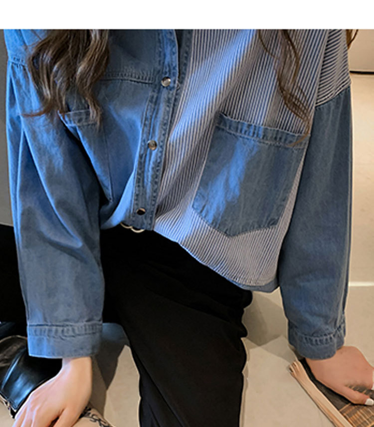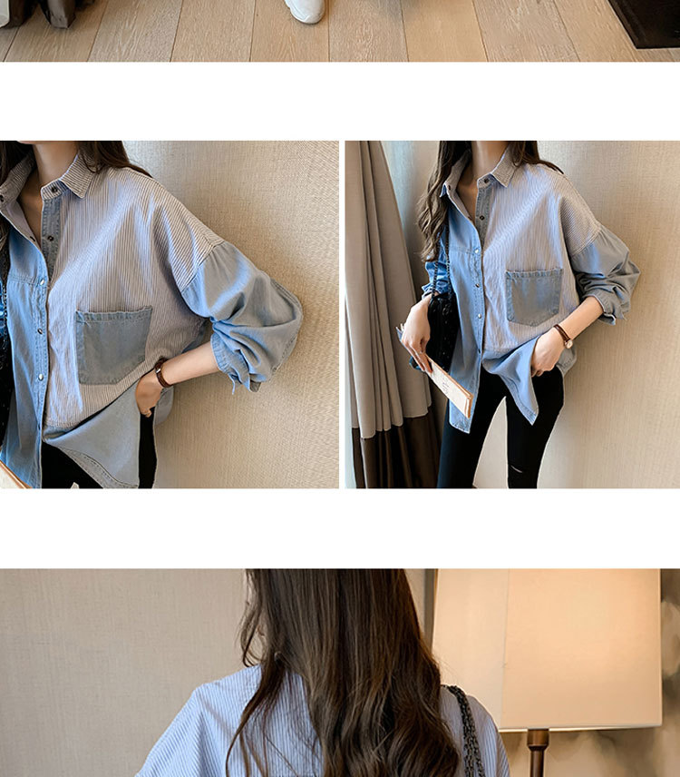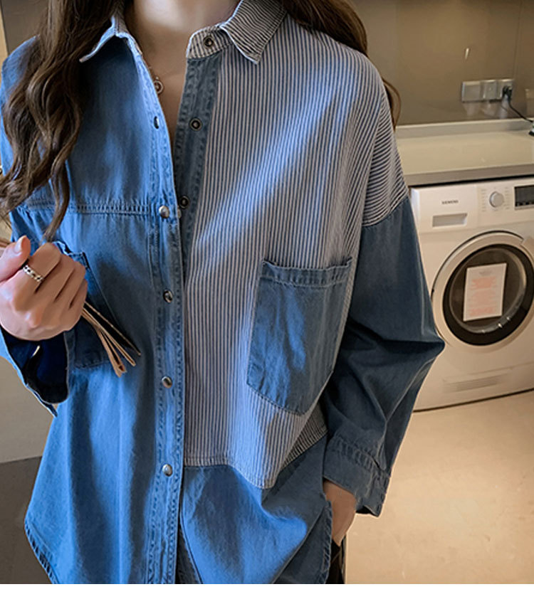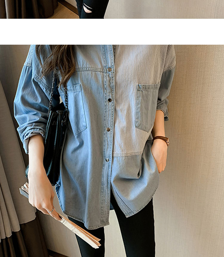 가을 2023 여자의 새로운 데님 셔츠 주의 기계 긴 소매 디자인 감각 학생 티셔츠 느슨한 외국 스타일 탑스토어 가기