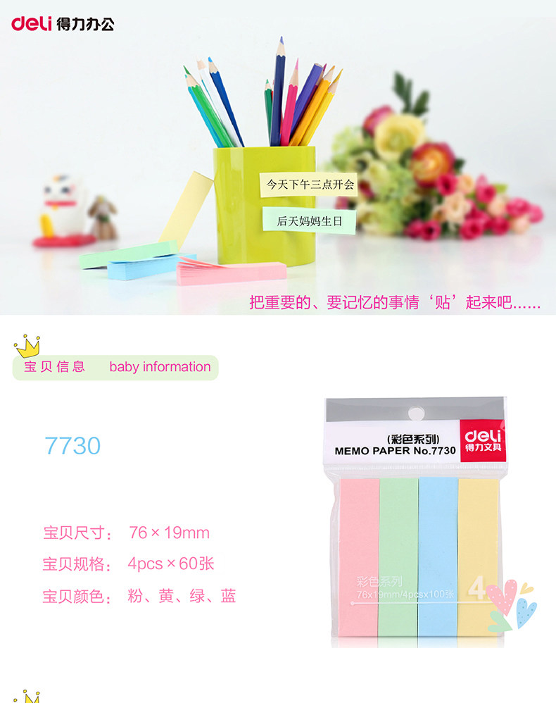 델리 7730 스티커 펩시 노트 스티커 컬러 노트 종이 메시지 스트립 분류 라벨 사무실 N 번 스티커