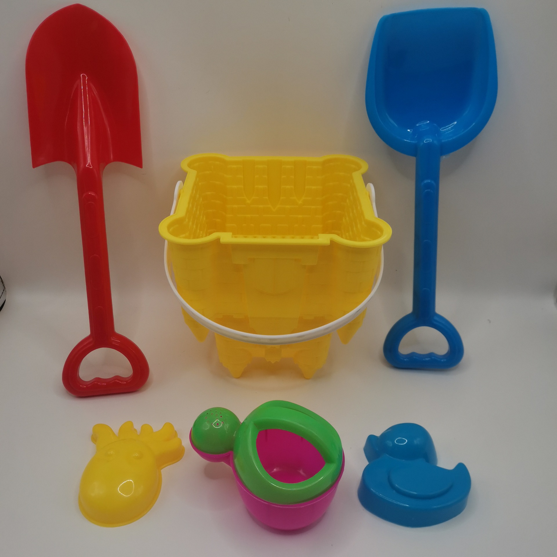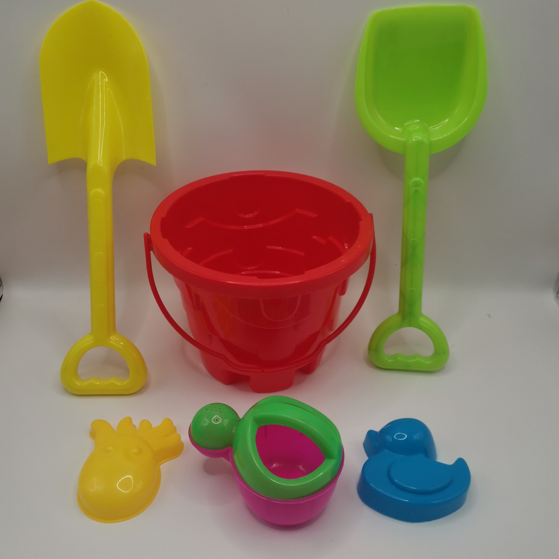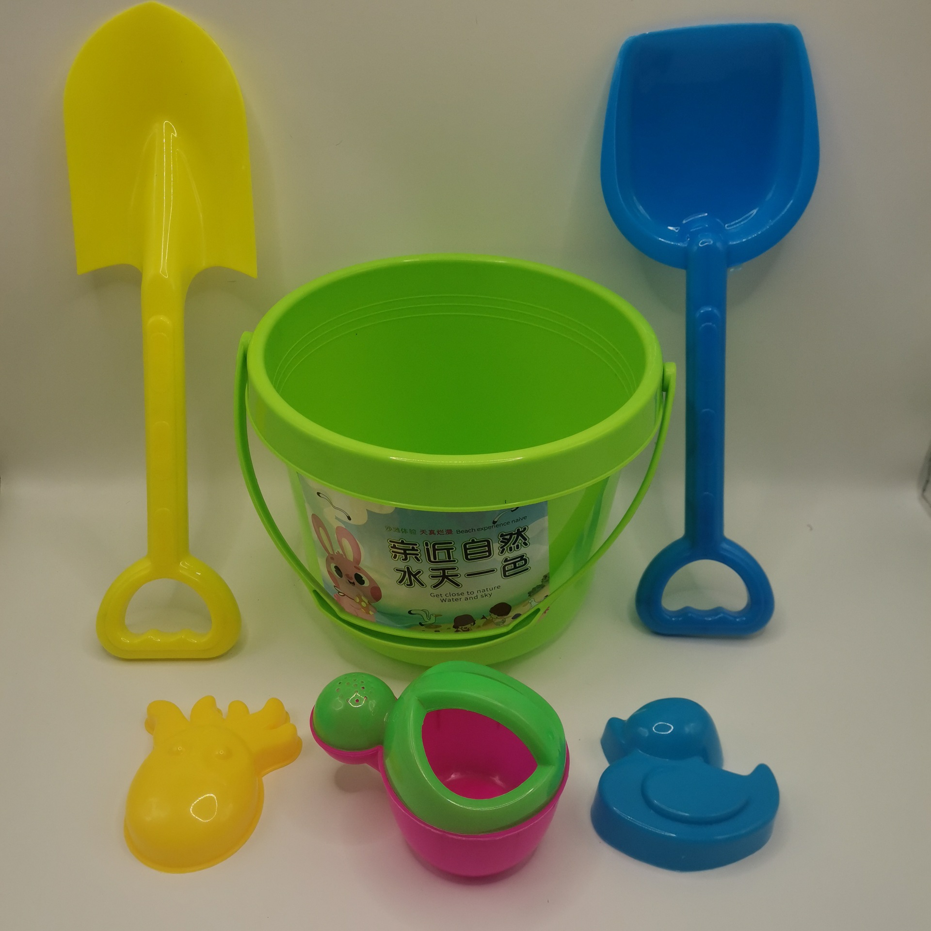 笑脸桶一个 平头铲一把 尖头铲一把 水壶一个 小动物随机两个