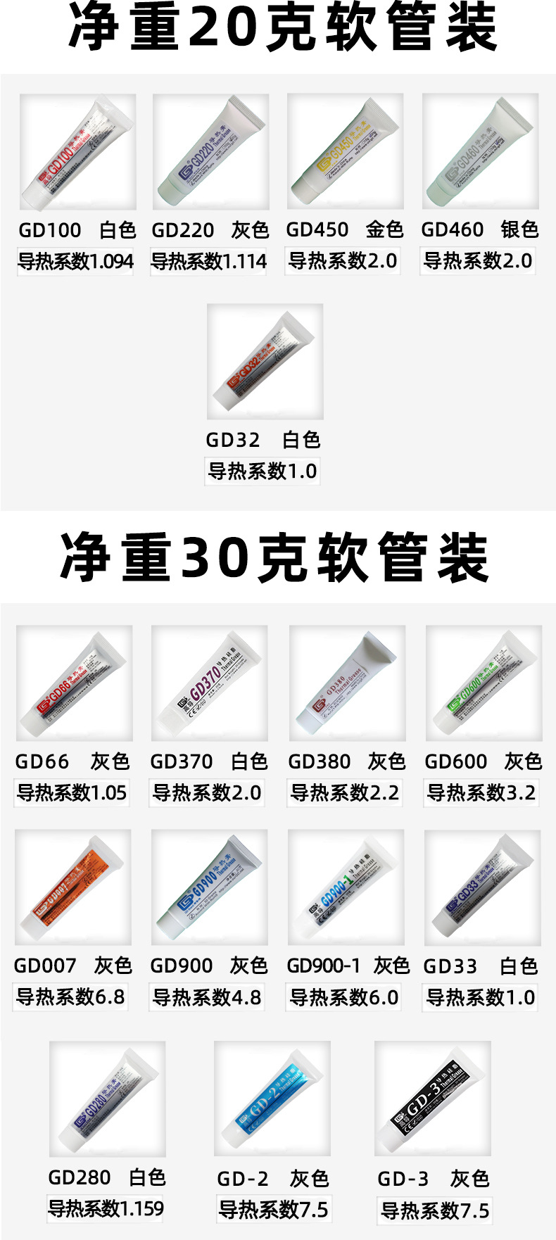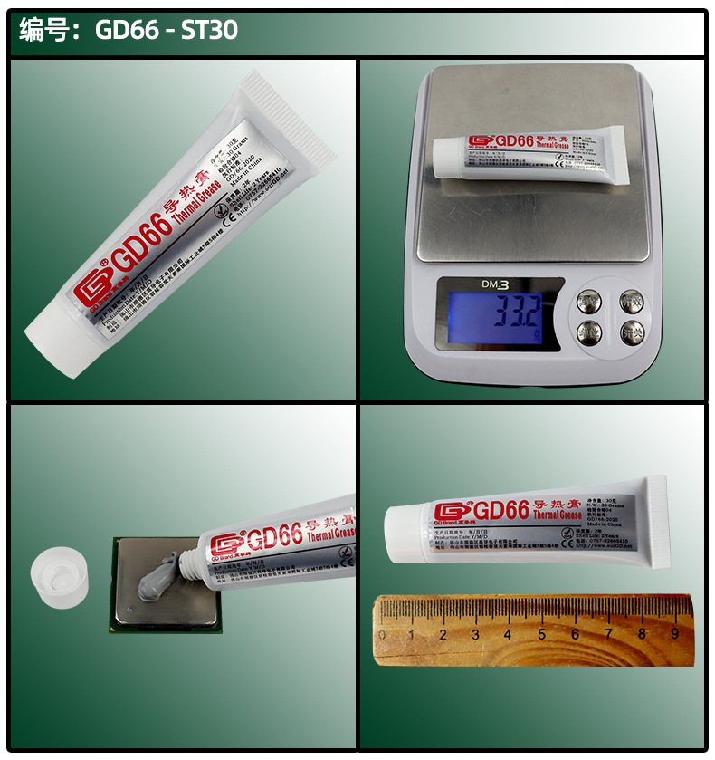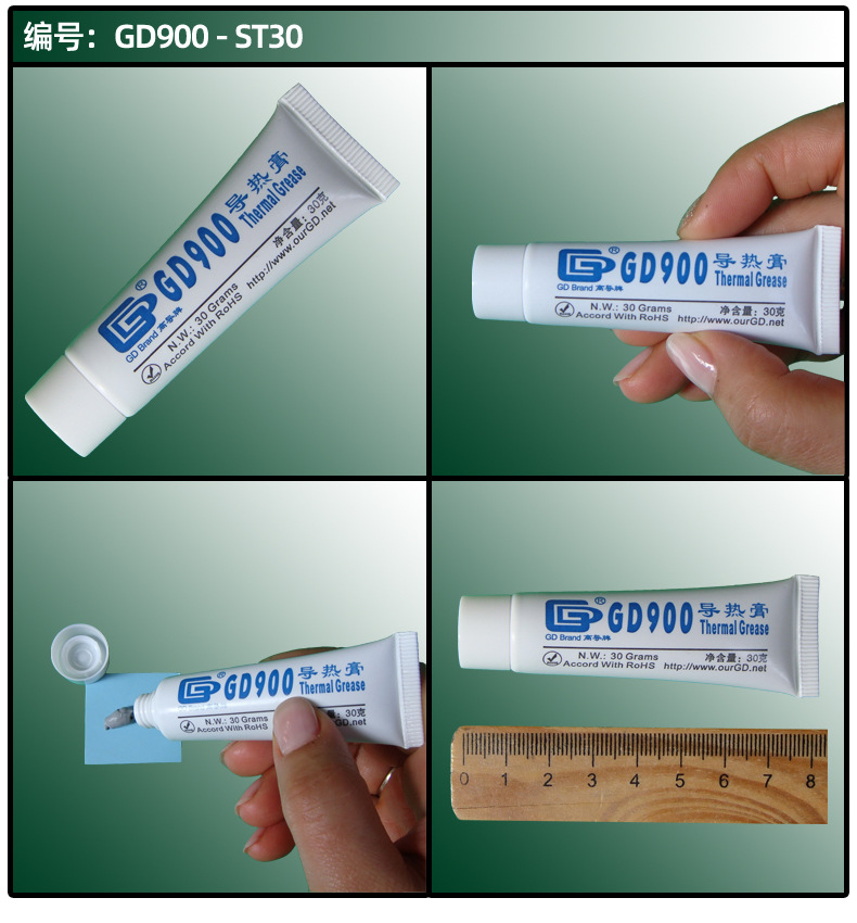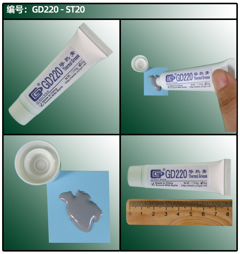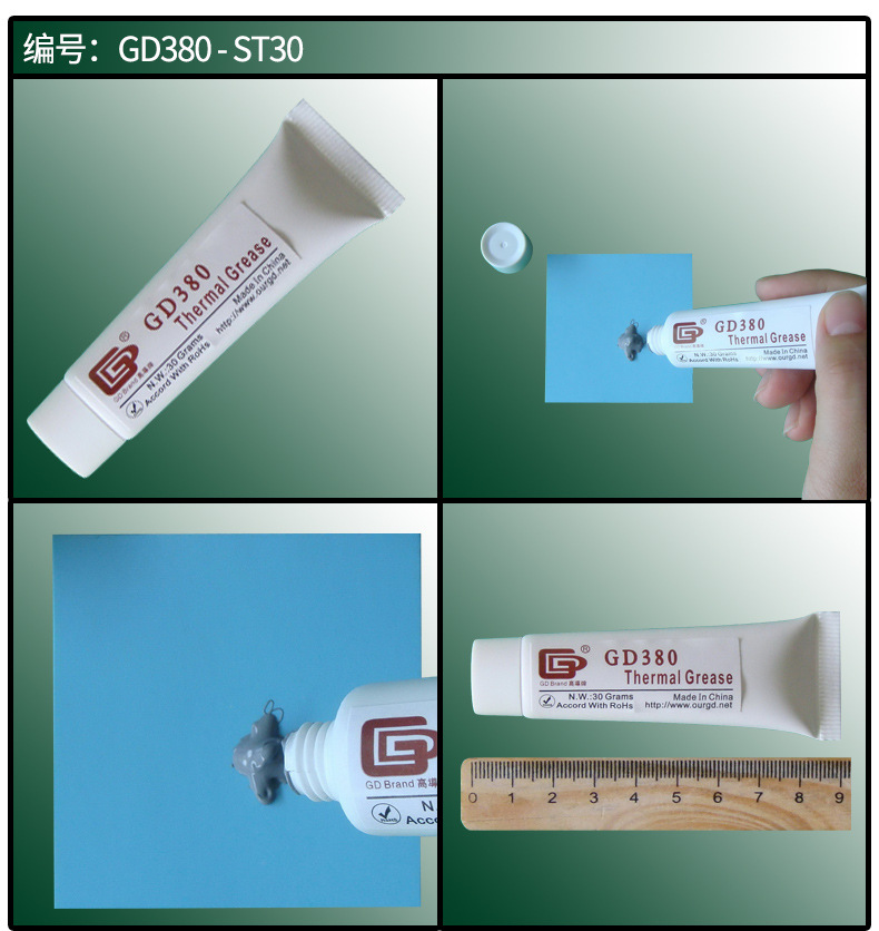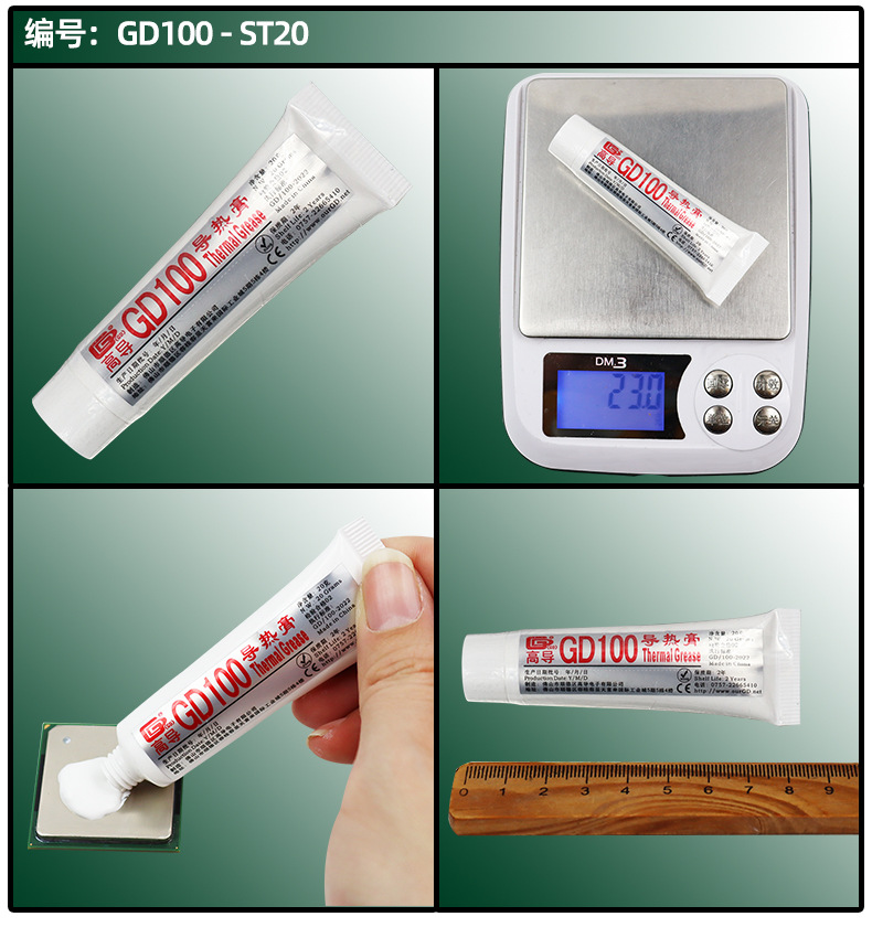 고전도도 순 중량 20/30g 플라스틱 호스 GD100 열 그리스 CPU/LED 열 방출 실리콘 페이스트 ST