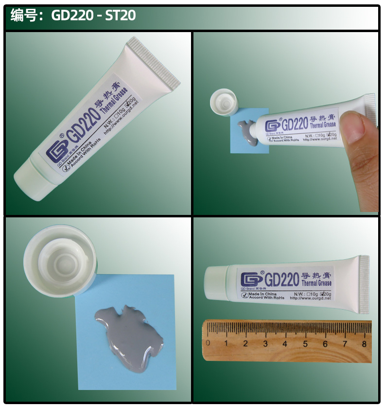 • GD220-ST20 회색 1.114 W/M-K 순 중량 20g 호스
