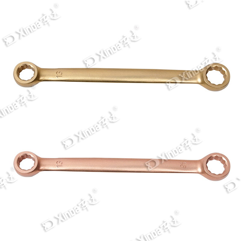 辛达牌防爆工具采用高强度铜合金制造,在易燃易爆工作场所,有效的防止工具与工作物相互摩擦、碰撞产生火花而引起的燃烧、爆炸事故,防爆性能按照我国防爆工具 GB10686-89( 国标)进行检测,防爆性能全部达标,安全可靠 [ 合格证书 (94) 量认(国)字( T0134) 号 ] ,而且强度高、韧性好 [( 抗拉强度σ b ≥ 686(Mpa) 延伸率δ 10 ≥ 5 %,强度 HB255-267, 扭矩达到 GB10687,10691-89 规定的 ac 级系列,技术指标达到国外同类产品水平。