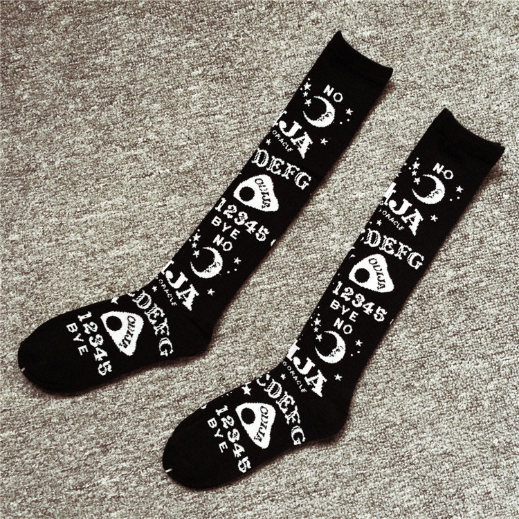유럽과 미국의 주문 봄 가을 겨울 검은 만화 중간 튜브 양말 면 중간 튜브 여성 양말 성격 무릎 높은 양말스토어 가기